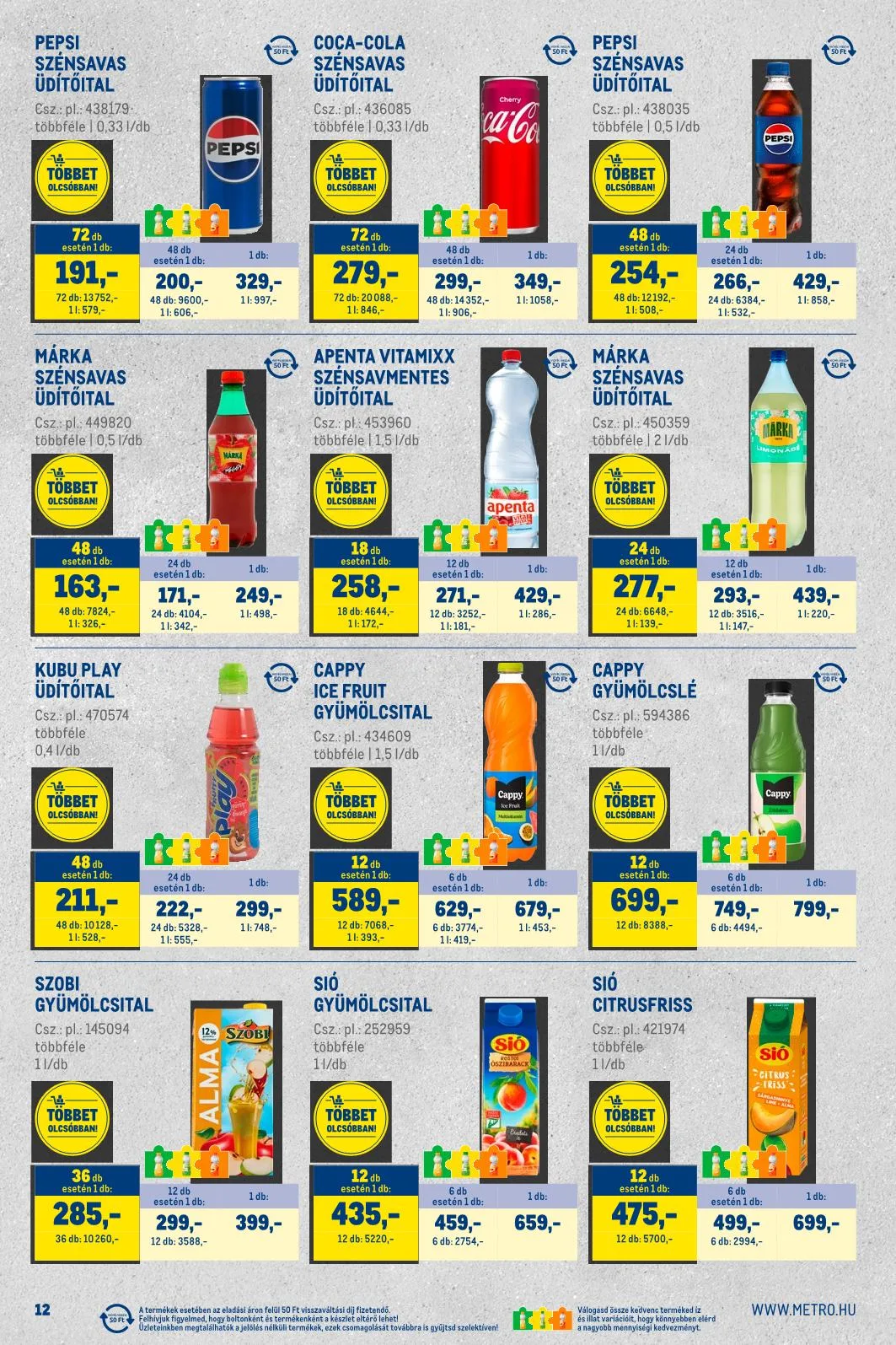 A termékek esetében az eladási áron felül 50 Ft visszaváltási díj fizetendő.