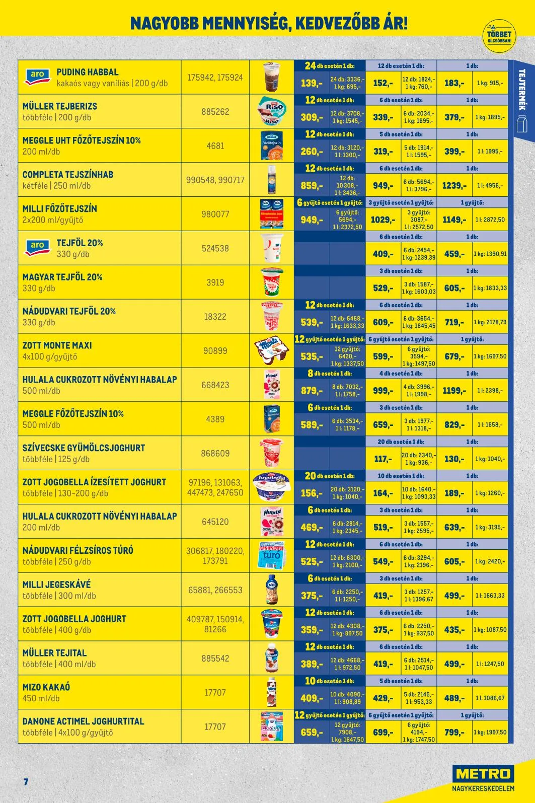 - Magyar Tejföl 20%: 3919 – 330 g/db