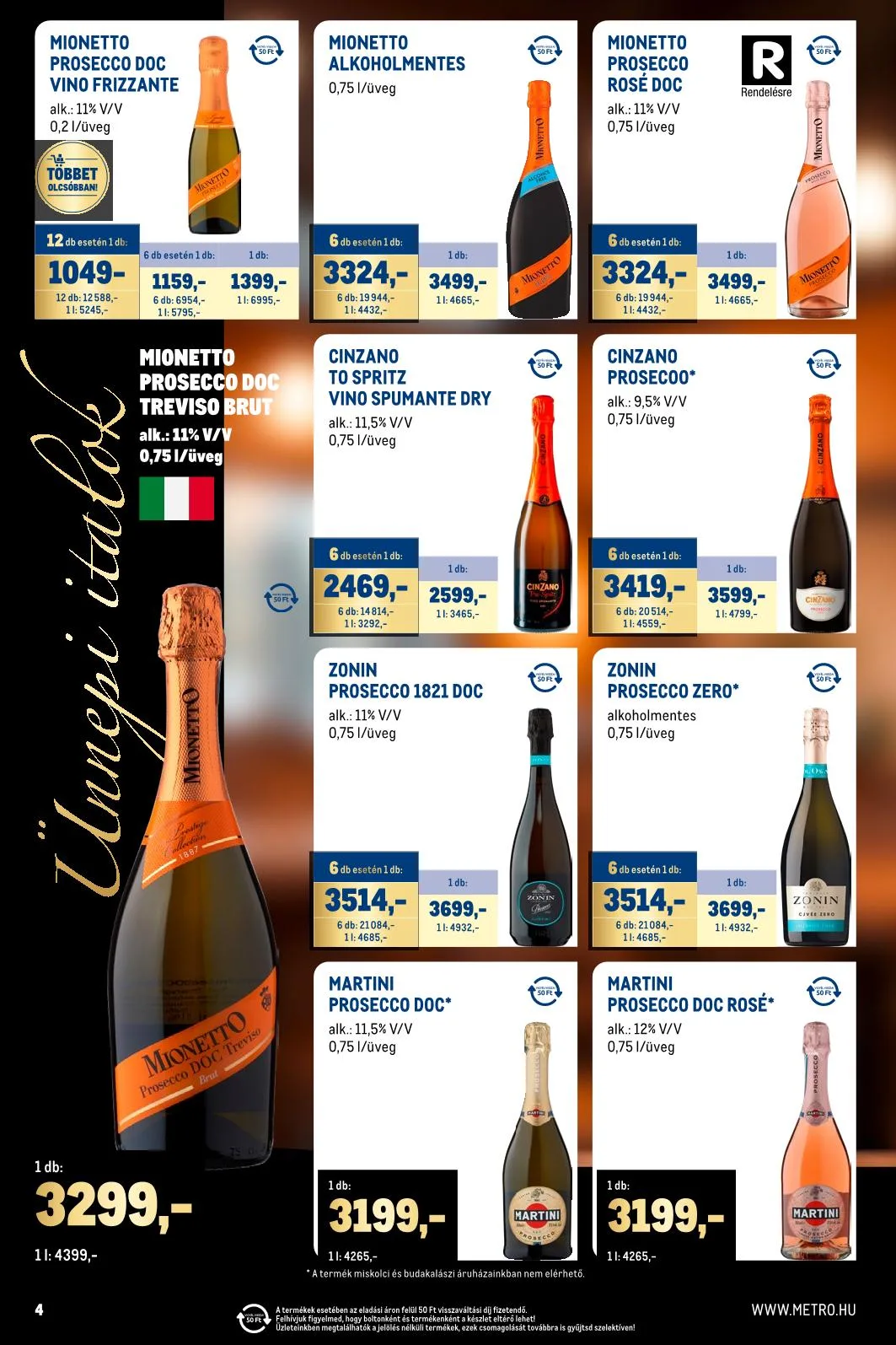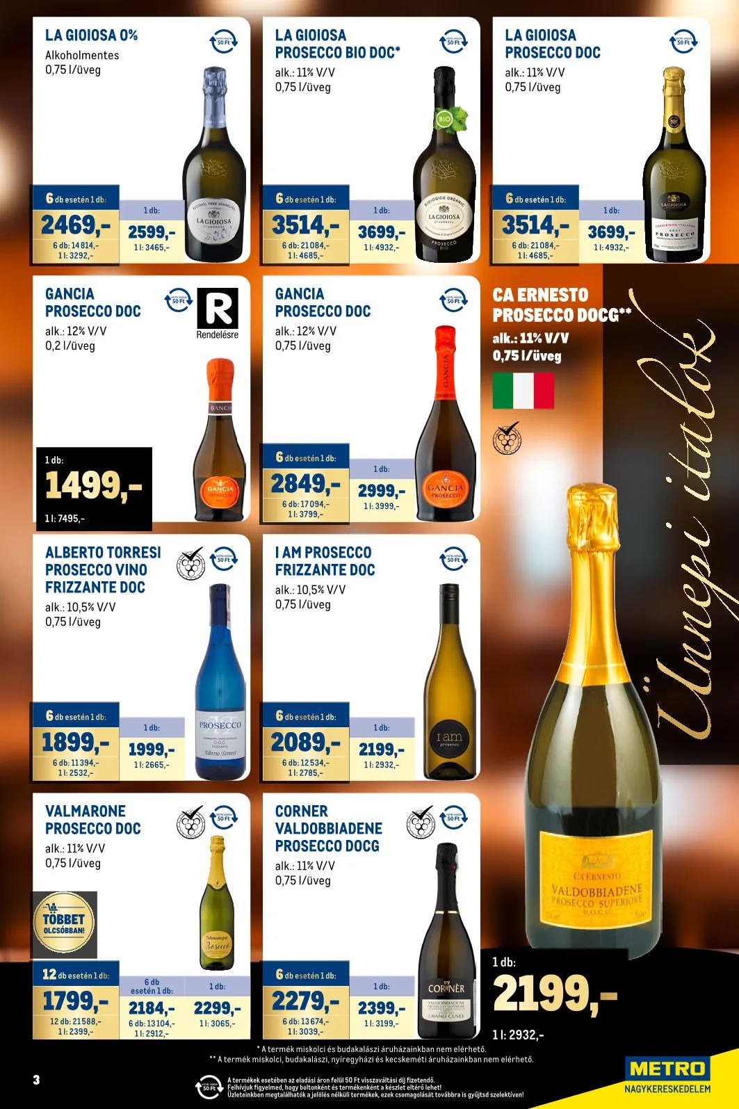 - La Gioiosa Prosecco DOC – alk. 11% V/V – 0,75 l üveg – 50 Ft