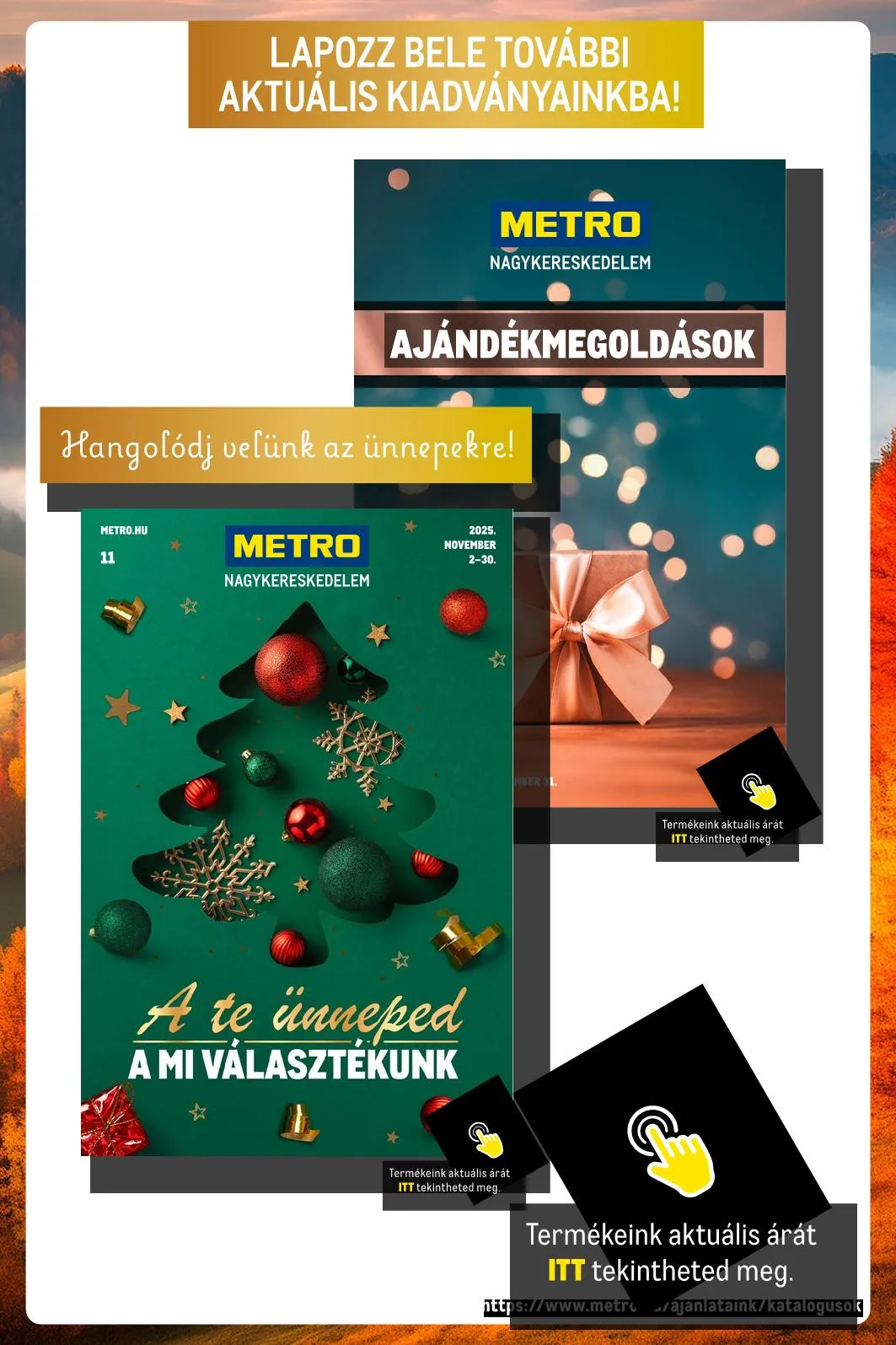 Melléklet a 2025/11. számú METRO-kiadványokhoz. Áraink forintban értendők, és áruházainkban történő vásárlás esetén érvényesek (kiszállítás esetén külön árlista érvényes, amelyről a Telecentertől vagy áruházi kapcsolattartódtól kaphatsz tájékoztatást). A feltüntetett árak áfával növelt eladási-, illetve egységárak, két ár feltüntetése esetén az alacsonyabb érték a nettó eladási-, illetve egységár. A feltüntetett göngyöleg árak a bruttó, azaz áfával növelt betétdíjakat jelentik. Felhívjuk figyelmed arra, hogy minden, kiadványunkban feltüntetett bruttó ár esetében kerekítést alkalmazunk. A fotók nem minden esetben a konkrét terméket ábrázolják, esetenként lehetnek illusztrációk.