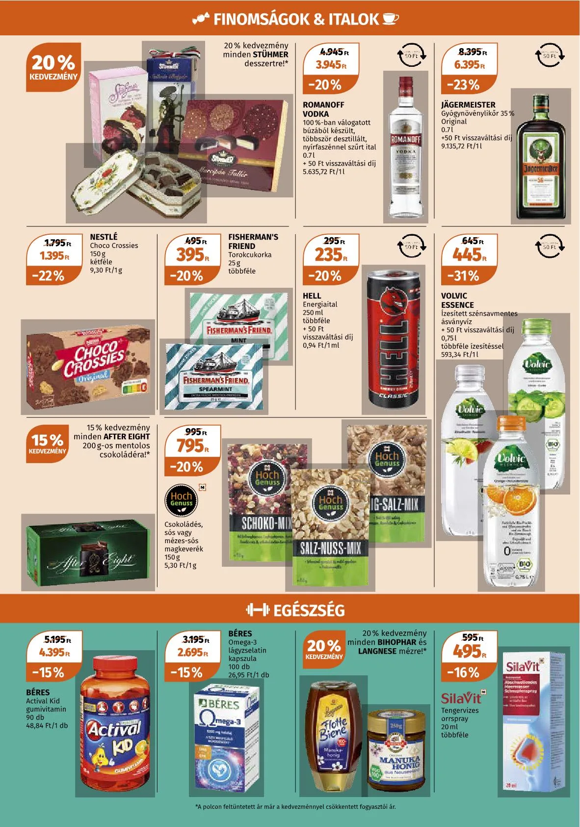 A kedvezményes árak a polcon feltüntetett árak, már a kedvezménnyel csökkentett fogyasztói árak.