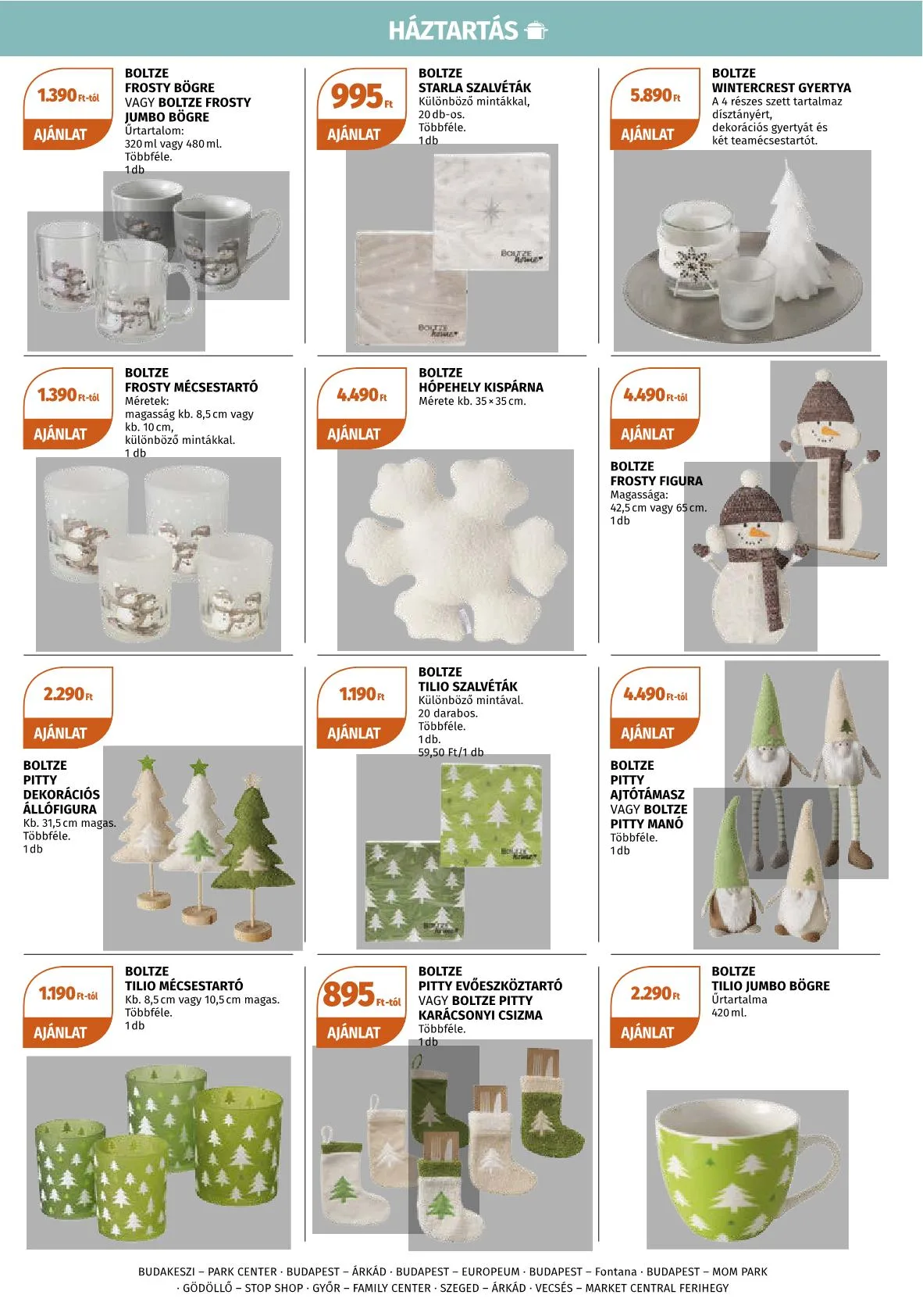 Ajánlat érvényessége: Budakeszi Park Center, Budapest Árkád, Budapest Europeum, Budapest Fontana, Budapest Mom Park, Gödöllő STOP SHOP, Győr Family Center, Szeged Árkád, Vecsés Market Central Ferihegy.