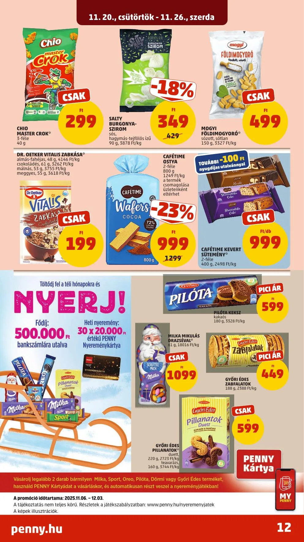 Fődíj: 500.000 Ft, heti nyeremény: 30×20.000 Ft értékű PENNY Nyereménykártya!