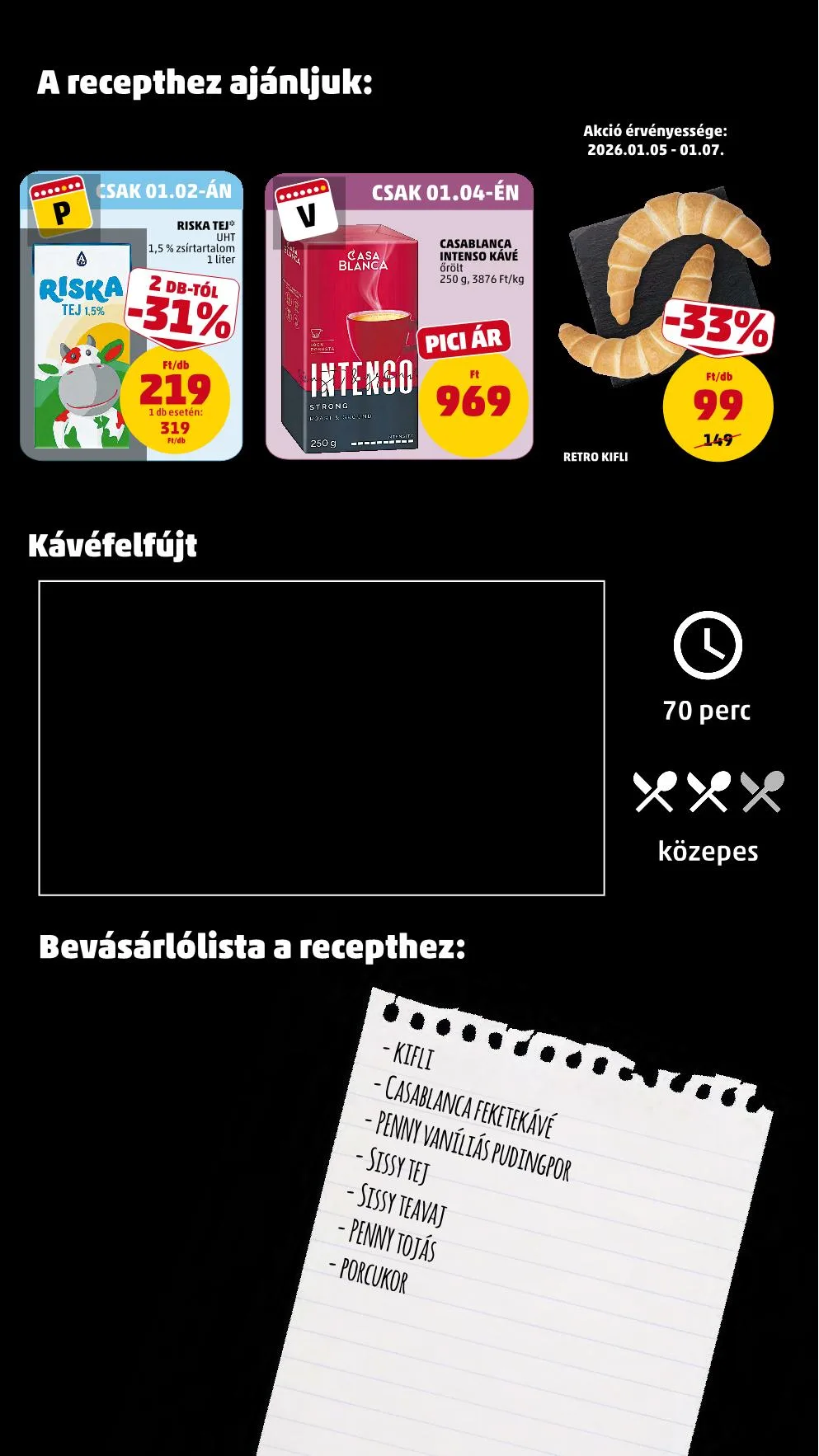 Ajánlat érvényessége: 01.05., hétfő – 01.07., szerda