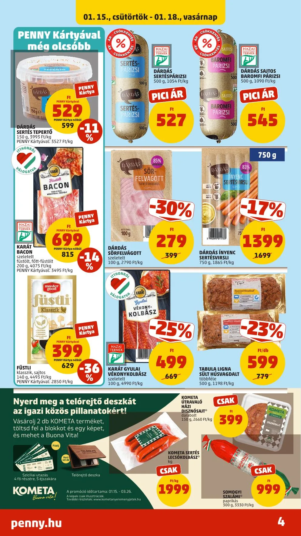- Zsíros Bacon 500 g – 3 998 Ft / kg – Penny Kártyával: 699 Ft