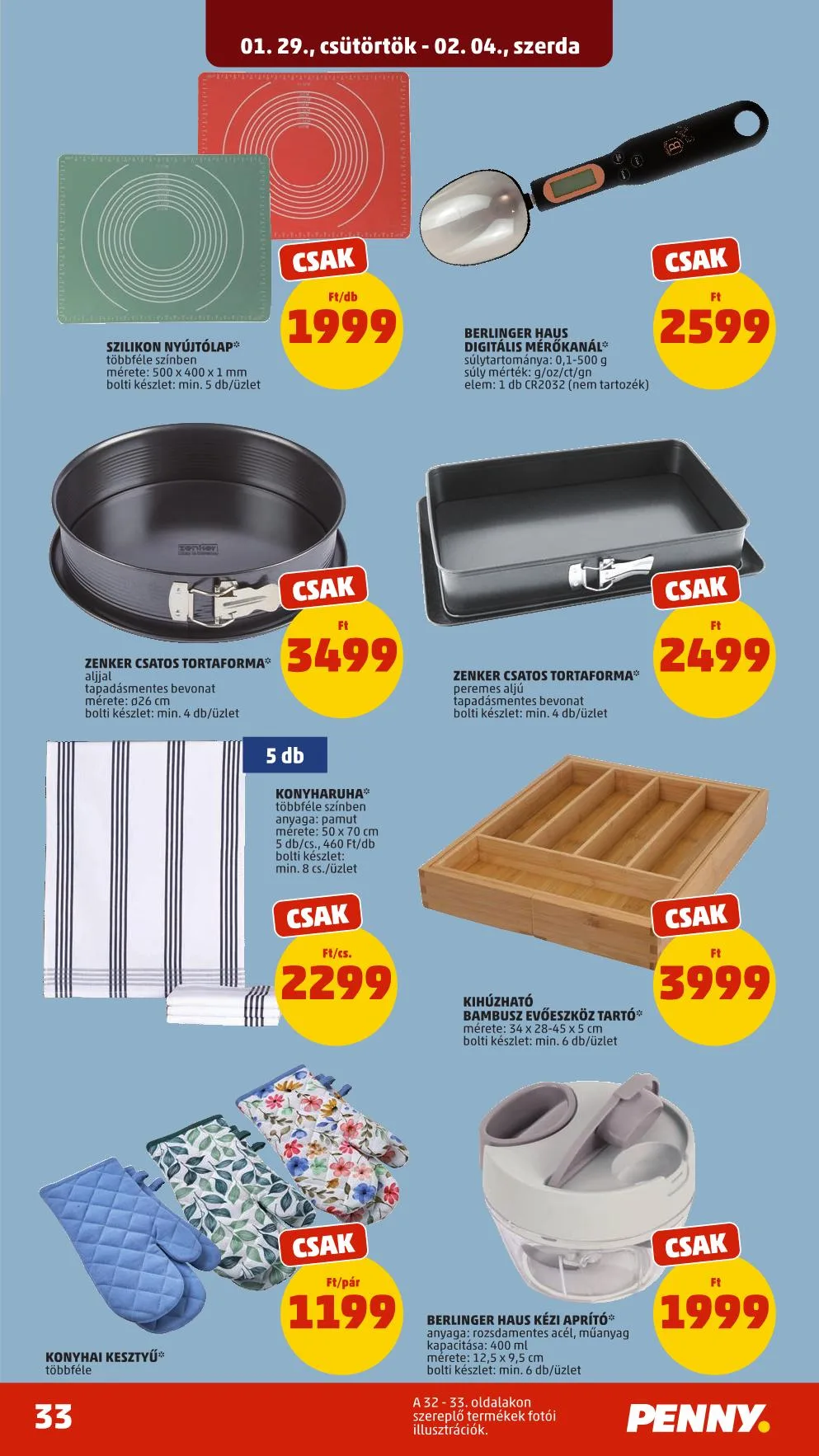 A 32-33. oldalakon szereplő termékek fotói illusztrációk.