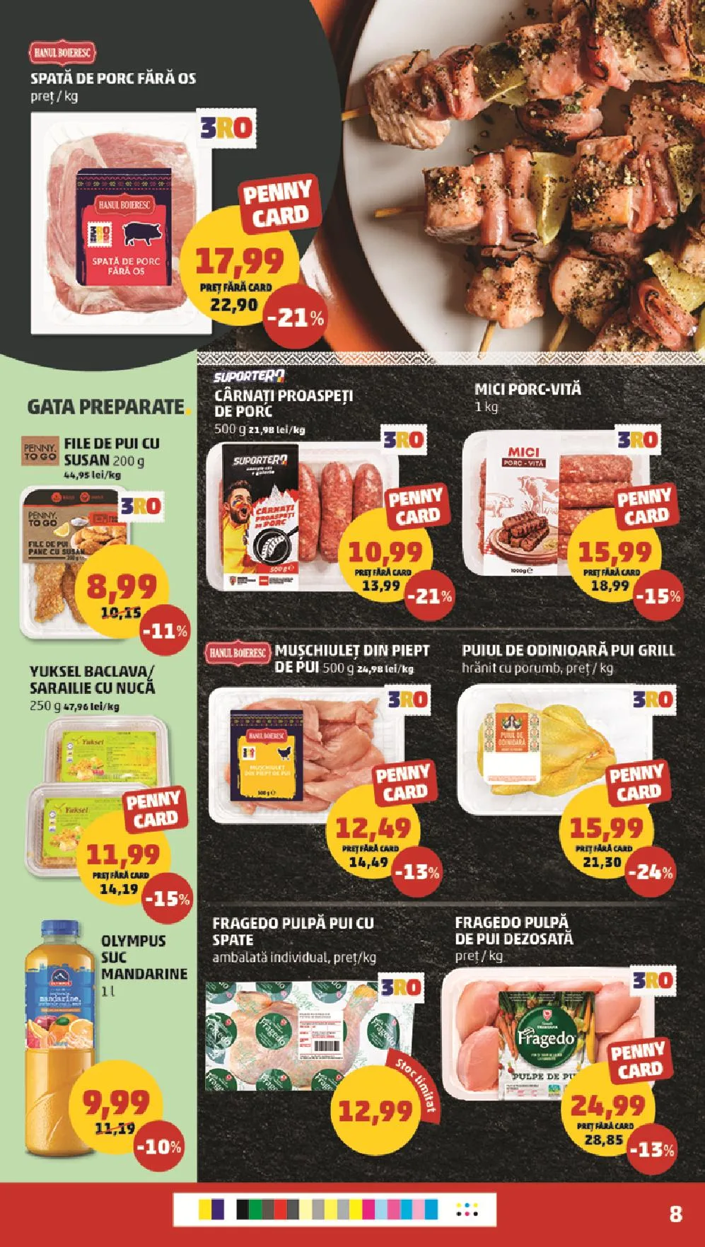 - Mici porc-vită: 1 kg – 15,99 (500 g – 13,99 lei, -21%)