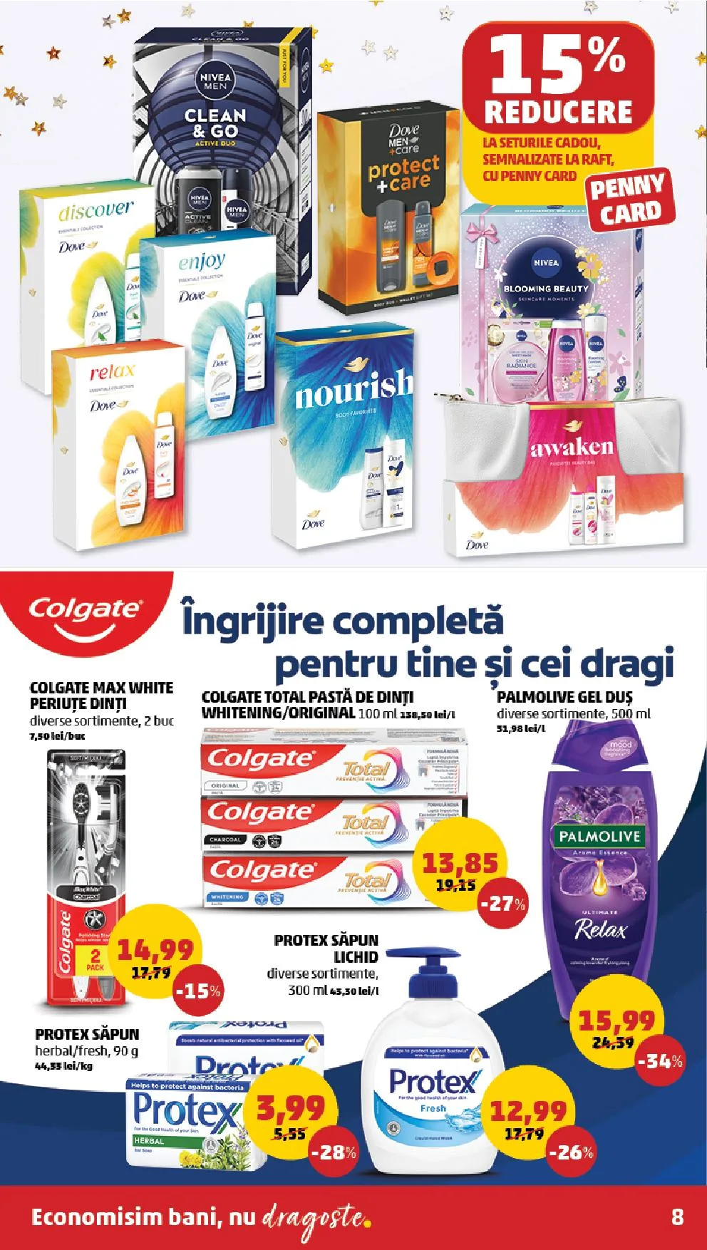 - Palmolive Gel Dusch – 31,98 lei/l (diverse sortimente, 500 ml)