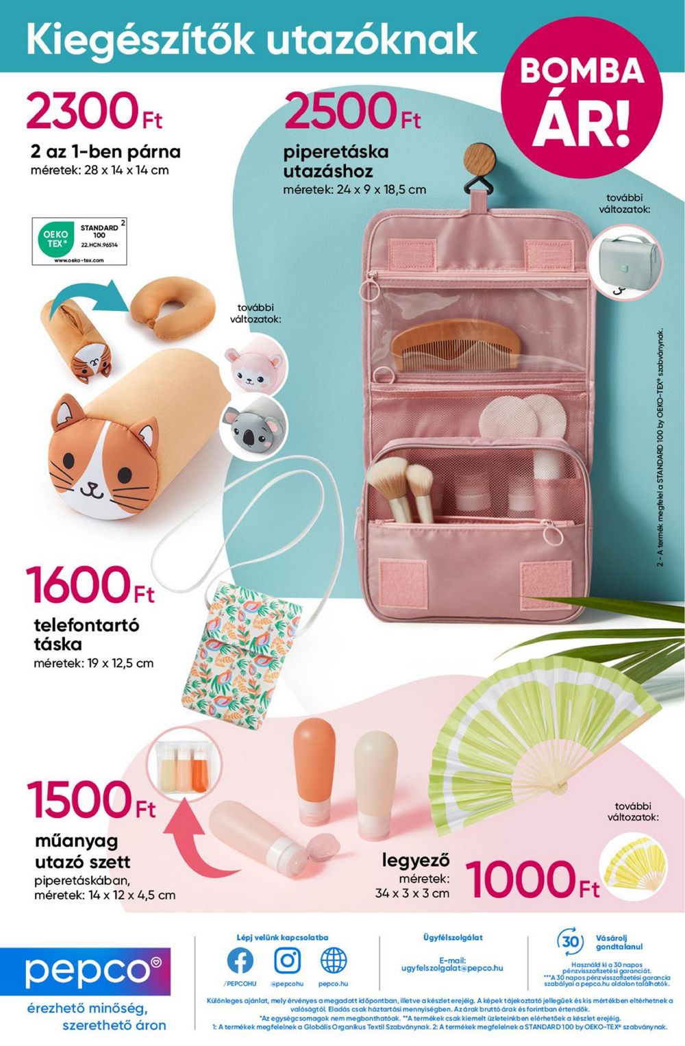 Kiegészítők utazóknak 2300Ft 2 az 1-ben párna méretek: 28 x 14 x 14 cm 2500Ft piperetáska utazáshoz méretek: 24 x 9 x 18,5 cm BOMBA ÁR! OEKO TEX STANDARD 100 22.HCN.96514 www.oeko-tex.com 1600Ft telefontartó táska méretek: 19 x 12,5 cm 1500Ft műanyag utazó szett piperetáskában, méretek: 14 x 12 x 4,5 cm pepco® érezhető minőség, szerethető áron további változatok: legyező méretek: 34 x 3 x 3 cm 1000Ft további további változatok: változatok: Lépj velünk kapcsolatba /PEPCOHU @pepcohu pepco.hu Ügyfélszolgálat E-mail: [email protected] 30 Vásárolj gondtalanul Használd ki a 30 napos pénzvisszafizetési garanciát. ***A 30 napos pénzvisszafizetési garancia szabályai a pepco.hu oldalon találhatók. Különleges ajánlat, mely érvényes a megadott időpontban, illetve a készlet erejéig. A képek tájékoztató jellegűek és kis mértékben eltérhetnek a valóságtól. Eladás csak háztartási mennyiségben. Az árak bruttó árak és forintban értendők. „Az egységcsomagok nem megbonthatóak. „A termékek csak kiemelt üzleteinkben elérhetőek a készlet erejéig. 1: A termékek megfelelnek a Globális Organikus Textil Szabványnak. 2: A termékek megfelelnek a STANDARD 100 by OEKO-TEX® szabványnak. 2-A termék megfelel a STANDARD 100 by OEKO-TEX® szabványnak.