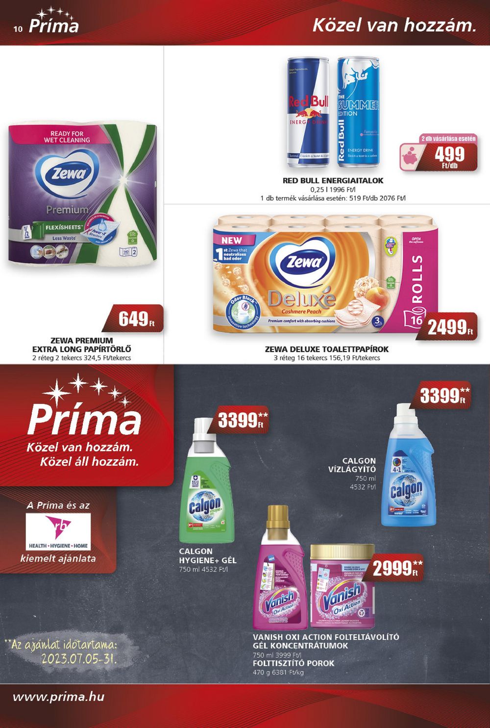 10 Príma 2 READY FOR WET CLEANING Zewa Premium FLEXÍSHEETS™ Less Waste Power-2 A Príma és az ZEWA PREMIUM EXTRA LONG PAPÍRTÖRLŐ 2 réteg 2 tekercs 324,5 Ft/tekercs Príma Közel van hozzám. Közel áll hozzám. HEALTH HYGIENE – HOME kiemelt ajánlata 102 „Az ajánlat időtartama: 2023.07.05-31. 649Ft www.prima.hu NEW st Zewa that neutralises bad odor Calgon Odor Block whnolog CALGON HYGIENE+ GÉL 750 ml 4532 Ft/l ENERG 3399** Közel van hozzám. Zewa Deluxe Cashmere Peach Premium comfort with absorbing cushions 83886 THE Bull SUMMER EDITION Vanish Ox Action RED BULL ENERGIAITALOK 0,25 | 1996 Ft/l 1 db termék vásárlása esetén: 519 Ft/db 2076 Ft/l Red Bull ZEWA DELUXE TOALETTPAPÍROK 3 réteg 16 tekercs 156,19 Ft/tekercs Fanyeris ENERGY DRINK OF CALGON VÍZLÁGYÍTÓ 4.1 750 ml 4532 Ft/l Vanish Oxi Action OPEN 2 db vásárlása esetén 499 Ft/db VANISH OXI ACTION FOLTELTÁVOLÍTÓ GÉL KONCENTRÁTUMOK 750 ml 3999 Ft/l FOLTTISZTÍTÓ POROK 470 g 6381 Ft/kg ROLLS Calgon 3399** 2999*** 2499R