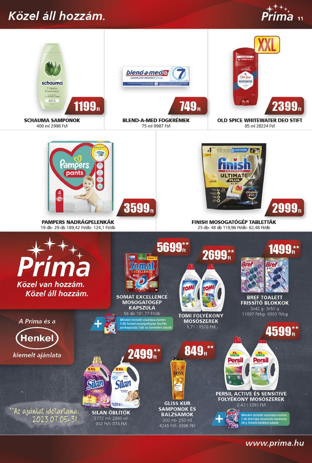 Közel áll hozzám. schauma 7 Herbs Freshness FGANCHE SCHAUMA SAMPONOK 400 ml 2998 Ft/ 1199Ft A Príma és a Pampers pants PAMPERS NADRÁGPELENKÁK 19 db- 29 db 189,42 Ft/db- 124,1 Ft/db Príma Közel van hozzám. Közel áll hozzám. Henkel kiemelt ajánlata stop prode STOP „Az ajánlat időtartama: 2023.07.05-31. XXL Somat Ser e blend-a-mede 7 COMPLETE PROTECT fresh BLEND-A-MED FOGKRÉMEK 75 ml 9987 Ft/l XXL 3599Ft Somat EXCELLENCE 4 in O GIGA SOMAT EXCELLENCE MOSOGATÓGÉP KAPSZULA 56 db 101,77 Ft/db Minden termek vasarlasa eseten 1 db Somat mosogatogep tisztito porkapszula 3 db-os termeket adunk. Silan Silan Santive 2499** SILAN ÖBLÍTŐK 2772 ml- 2860 ml 902 Ft/l- 874 Ft/l 749ft 5699** TOMI GLISS NEW LEMON GLISS KUR SAMPONOK ÉS BALZSAMOK 200 ml- 250 ml 4245 Ft/l- 3396 Ft/l OOSE TOMI 849** 2399Ft OLD SPICE WHITEWATER DEO STIFT 85 ml 28224 Ft/ finish POWERBALL 25 TOMI FOLYÉKONY MOSÓSZEREK 1,71 | 1578 Ft/l PARER 148HSH 2699*** XXLLLL Old Spice WHITEWATER ULTIMATE PLUS SAVE WATER the FINISH MOSOGATÓGÉP TABLETTÁK 25 db-48 db 119,96 Ft/db- 62,48 Ft/db + XXL Príma 11 CYCLESYNC DEED CLEAN THO Bref 2999R 1499*** Bref BREF TOALETT FRISSÍTŐ BLOKKOK 3×42 g- 3×50 g 11897 Ft/kg-9993 Ft/kg Persil Persil 4599** PERSIL ACTIVE ÉS SENSITIVE FOLYÉKONY MOSÓSZEREK 2,431 1893 Ft/l Minden termek vasarlasa eseten 1 db Bref spa moments harmony 50 g frissito blokkot adunk. www.prima.hu