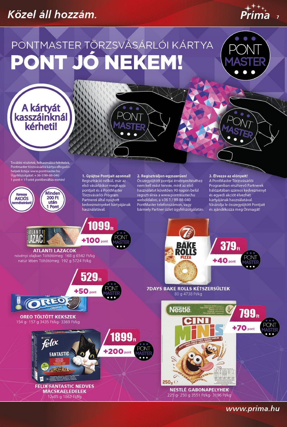 Közel áll hozzám. PONTMASTER TÖRZSVÁSÁRLÓI KÁRTYA PONT JÓ NEKEM! A kártyát kasszáinknál kérheti! További részletek, felhasználási feltételek, Pontmaster törzsvásárlói kártya elfogadó- helyek listája: www.pontmaster.hu Ügyfélszolgálat: +36-1/99-88-040 1 pont = 1 Forint pontbeváltás esetén! Keresse AKCIÓS termékeinket! BATLANTI LAZAC Minden 200 Ft után 1 Pont OREO ORIGINAL ATLANTI LAZACOK növényi olajban Töltötömeg: 168 g 6542 Ft/kg natúr lében Töltőtömeg: 192 g 5724 Ft/kg OREO TÖLTÖTT KEKSZEK 154 g- 157 g 3435 Ft/kg- 3369 Ft/kg SEPURINA felix FANTASTIC E 1. Gyüjtse Pontjait azonnal! Regisztráció nélkül, már az első vásárláskor megkapja pontjait és a PontMaster Törzsvásárlói Program Partnerei által nyújtott kedvezményeket kártyájának használatával. 1099Ft PONT +100 pont MASTER 529ft +50 pont PONT MASTER FELIX FANTASTIC NEDVES MACSKAELEDELEK 12×85 g 1862 Ft/kg PONT MASTER /1899, +200 pont 2. Regisztráljon egyszerűen! Összegyűjtött pontjai érvényesítéséhez nem kell mást tennie, mint az első használatot követően 90 napon belül regisztrálnia a www.pontmaster.hu weboldalon, a +36 1/99-88-040 PontMaster telefonszámon, vagy bármely Partner üzlet ügyfélszolgálatán. 7 BAKE ROLLS PIZZA PONT MASTER PONT MASTER 3. Élvezze az előnyeit! A PontMaster Törzsvásárlói Programban résztvevő Partnerek hálózatában számos kedvezményt és egyedi akciót élvezhet kártyájának használatával. Vásárolja le összegyűjtött Pontjait és ajándékozza meg Önmagát! en gabon PONT MASTER +40 pont 7DAYS BAKE ROLLS KÉTSZERSÜLTEK 80 g 4738 Ft/kg Nestlē Príma 7 379RL CINI MINIS ORULETES FAMESE POORASELT A AKAN PASELES CONS 250g e NESTLÉ GABONAPELYHEK 225 g- 250 g 3551 Ft/kg- 3196 Ft/kg PONT MASTER 799FL +70 pont PONT MASTER www.prima.hu