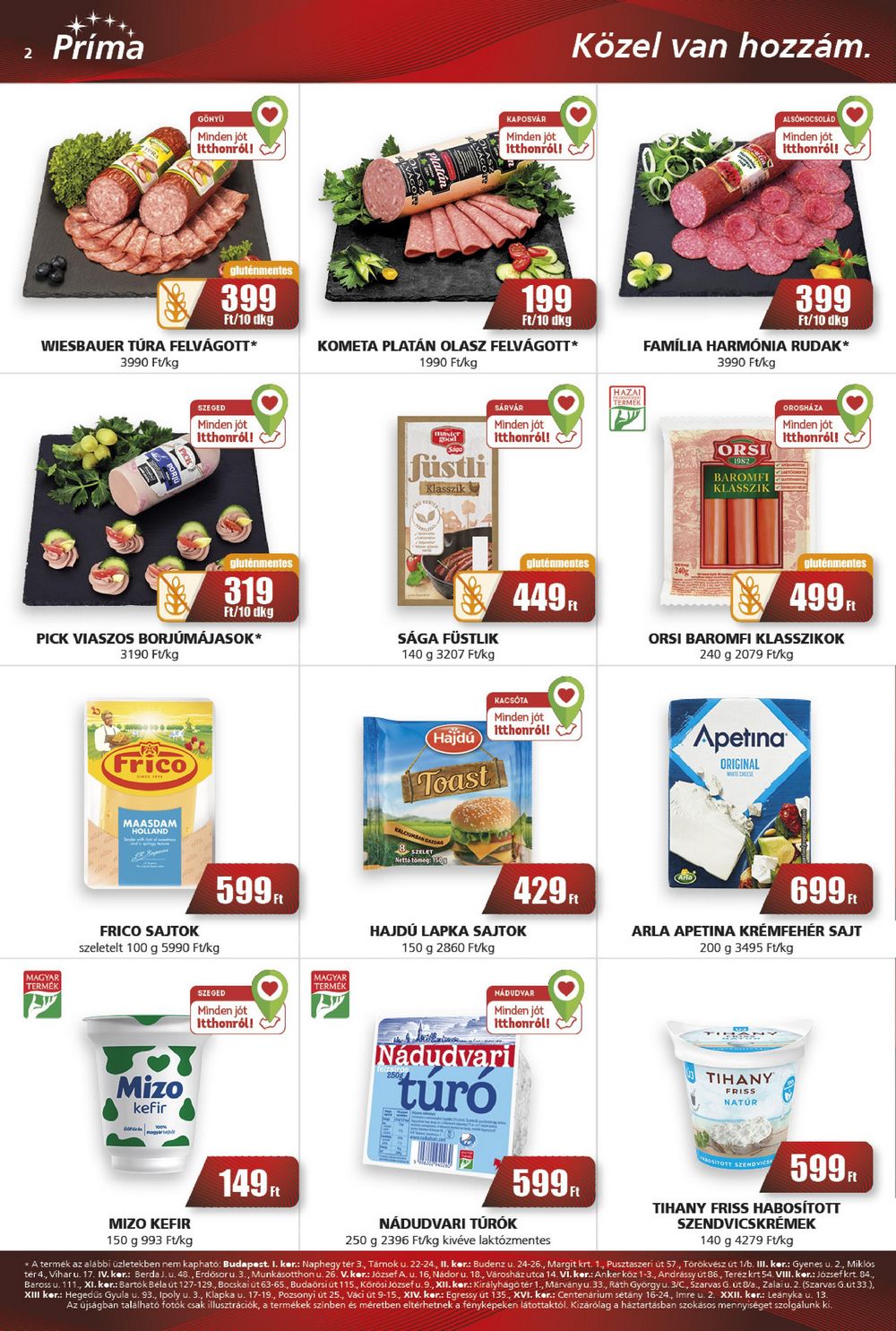 2 Príma MAGYAR TERMEK good 3190 Ft/kg WIESBAUER TÚRA FELVÁGOTT* 3990 Ft/kg Frico MAASDAM HOLLAND Seat L’s PICK VIASZOS BORJÚMÁJASOK* GÖNYÜ Minden jót Itthonról! ** Mizo kefir MIZO KEFIR 150 g 993 Ft/kg gluténmentes 399 Ft/10 dkg FRICO SAJTOK szeletelt 100 g 5990 Ft/kg SZEGED Minden jót Itthonról! gluténmentes 319 Ft/10 dkg 599 SZEGED Minden jót Itthonról! 149ft MAGYAR TERMEK KOMETA PLATÁN OLASZ FELVÁGOTT* 1990 Ft/kg મન Sogo füstli Klasszik SÁGA FÜSTLIK 140 g 3207 Ft/kg Hajdú Toast KALCIUMBAN GAZDAS 8 SZELET Nettó tömeg: 1500 KAPOSVÁR Minden jót Itthonról! 250€ SÁRVÁR Minden jót Itthonról! 199 Ft/10 dkg 449 gluténmentes KACSÓTA Minden jót Itthonról! HAJDÚ LAPKA SAJTOK 150 g 2860 Ft/kg Nadudvari túró Közel van hozzám. 429Ft NÁDUDVAR Minden jót Itthonról! 599 Ft NÁDUDVARI TÚRÓK 250 g 2396 Ft/kg kivéve laktózmentes HAZAI TERMEN ORSI 1982 FAMÍLIA HARMÓNIA RUDAK* 3990 Ft/kg BAROMFI KLASSZIK Lad ALSÓMOCSOLÁD Minden jót Itthonról! 399 Ft/10 dkg Apetina ORIGINAL WHITE CHEESE TIHANY FRISS NATÚR OROSHÁZA Minden jót Itthonról! ORSI BAROMFI KLASSZIKOK 240 g 2079 Ft/kg SITOTT SZENDVICSE gluténmentes 499 699 Ft ARLA APETINA KRÉMFEHÉR SAJT 200 g 3495 Ft/kg 599 TIHANY FRISS HABOSÍTOTT SZENDVICSKRÉMEK 140 g 4279 Ft/kg * A termék az alábbi üzletekben nem kaphato: Budapest, I. ker.: Naphegy tér 3., Tárnok u. 22-24., II. ker.: Budenz u. 24-26., Margit krt. 1, Pusztaszeri út 57., Törökvész út 1/b. III. ker.: Gyenes u. 2., Miklos ter 4., Viharu. 17. IV. ker.: Berda J. u. 48., Erdosor u. 3., Munkásotthon u. 26. V. ker.: József A. u. 16, Nádor u. 18., Városház utca 14. VI. ker.: Anker köz 1-3., Andrássy út 86., Teréz krt 54. VIII. ker.: József krt. 84., Baross u. 111., XI. ker.: Bartók Béla út 127-129., Bocskai út 63-65., Budaörsi út 115., Körösi József u. 9., XII. ker.: Királyhago tér 1., Márvány u. 33., Ráth György u. 3/C., Szarvas G. ut 8/a., Zalai u. 2. (Szarvas G.ut 33.), XIII ker.: Hegedűs Gyula u. 93., Ipoly u. 3., Klapka u. 17-19., Pozsonyi út 25., Váci út 9-15., XIV. ker.: Egressy út 135., XVI. ker.: Centenárium sétány 16-24., Imre u. 2. XXII. ker.: Leanyka u. 13. Az újságban található fotók csak illusztrációk, a termékek szinben és méretben eltérhetnek a fényképeken látottaktól. Kizárólag a háztartásban szokásos mennyiséget szolgálunk ki.