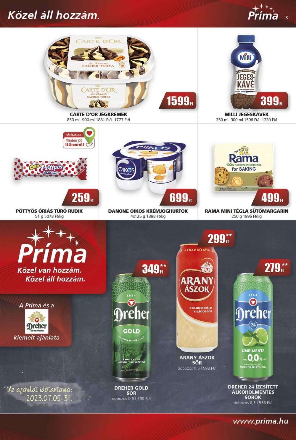 Közel áll hozzám. ORIAS Pöttyös TURO RUDI A Príma és a Dreher SORGYÁRAK kiemelt ajánlata CARTE D’OR Les Dessesta SACHER-TORTA 8 CARTE D’OR Les Desserts SACHER-TORTA MÁTÉSZALKA Minden jót Itthonról! PÖTTYÖS ÓRIÁS TÚRÓ RUDIK 51 g 5078 Ft/kg CARTE D’OR JÉGKRÉMEK 850 ml- 900 ml 1881 Ft/l- 1777 Ft/l Príma Közel van hozzám. Közel áll hozzám. „Az ajánlat időtartama: 2023.07.05-31. 259Ft B OIKOS Kaimjoghurt 1854 OIKOS 699 DANONE OIKOS KRÉMJOGHURTOK 4×125 g 1398 Ft/kg Dreher GOLD 349*** MALATAL 1599R Keksala ANNYI A VILAG, AMENNYIT BELETÖLTEST DREHER GOLD SOR dobozos 0,5 1 698 Ft/l A FRANKO SÖR ARANY ÁSZOK 299* TRADICIONÁLIS VILÁGOS SÖR SASTOCE ARANY ÁSZOK SÖR dobozos 0,5 1 598 Ft/l Príma 3 Milli HECH PORNOLESSEL JEGES- KÁVÉ GYENGE MILLI JEGESKÁVÉK 250 ml- 300 ml 1596 Ft/l- 1330 Ft/1 499 Ft RAMA MINI TÉGLA SÜTŐMARGARIN 250 g 1996 Ft/kg Rama 100% NATURAL INGREDIENTS for BAKING 399Ft 1854 279*** Dreher LIME-MENTA 0,0% N ANNYIA VILÁG, AMENNYIT BELETÖLTESZ DREHER 24 ÍZESÍTETT ALKOHOLMENTES SÖRÖK dobozos 0,5 1 558 Ft/l www.prima.hu
