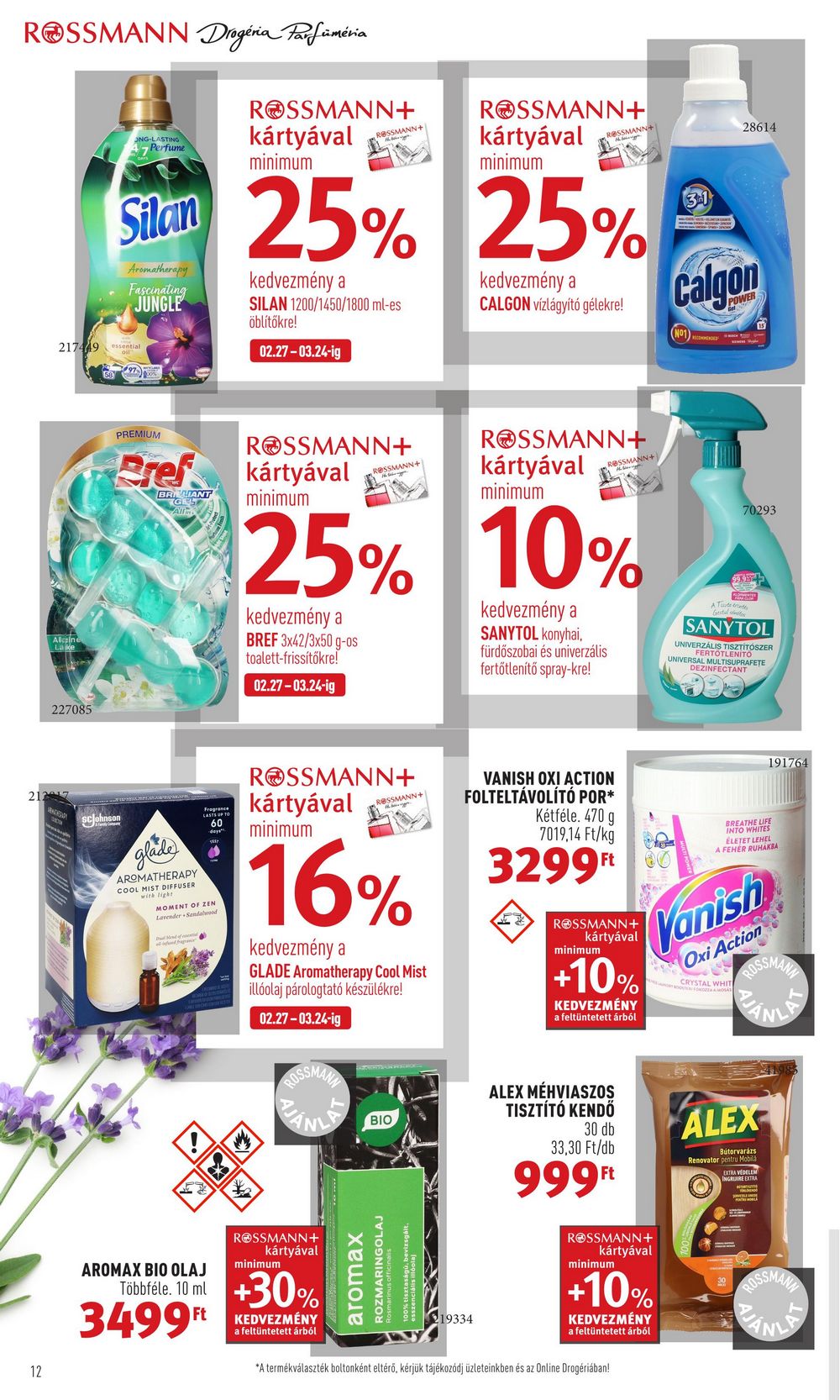 ROSSMANN Drogéria Parfüméria 217449 12 Alcaine Lake 227085 21217 ONG-LASTING 7 Perfume PREMIUM scjohnson Bref Silan 25% 25% Aromatherapy Fascinating JUNGLE kedvezmény a CALGON vízlágyító gélekre! BRILIANT GL All glade AROMATHERAPY COOL MIST DIFFUSER with light Fragran 60 days MOMENT OF ZEN Lavender Sandalwood AROMAX BIO OLAJ ROSSMANN+ kártyával minimum 3499Ft kedvezmény a SILAN 1200/1450/1800 ml-es öblítőkre! 02.27-03.24-ig ROSSMANN+ ROSSMANN+ kártyával minimum minimum Többféle. 10 ml +30% ROSSMANN+ kártyával minimum ROSSMANN+ kártyával ROSSMANN+ 16% kedvezmény a GLADE Aromatherapy Cool Mist illóolaj párologtató készülékre! 02.27-03.24-ig KEDVEZMÉNY a feltüntetett árból 25% 10% kedvezmény a BREF 3×42/3×50 g-os toalett-frissítőkre! kedvezmény a SANYTOL konyhai, fürdőszobai és univerzális fertőtlenítő spray-kre! 02.27-03.24-ig ROSSMANN+ BIO ROSSMANN+ kártyával minimum aromax ROZMARINGOLAJ ROSSMANN+ 19334 ROSSMANN+ kártyával minimum ROSSMANN+ VANISH OXI ACTION FOLTELTÁVOLÍTÓ POR* Kétféle. 470 g 7019,14 Ft/kg ROSSMANN+ kártyával 3299Ft 0 minimum +10% KEDVEZMÉNY a feltüntetett árból ALEX MÉHVIASZOS TISZTÍTÓ KENDŐ 30 db 33,30 Ft/db 999Ft ROSSMANN+ kártyával minimum +10% KEDVEZMÉNY a feltüntetett árból *A termékválaszték boltonként eltérő, kérjük tájékozódj üzleteinkben és az Online Drogériában! 31 28614 Calgon 15 70293 99.99 A Tudeerde SANYTOL UNIVERZÁLIS TISZTÍTÓSZER UNIVERSAL Vanish Oxi Action CRYSTAL WHIT FERTŐTLENÍTŐ DEZINFECTANTE BREATHE LIFE INTO WHITES ÉLETET LEHEL A FEHÉR RUHAKBA 191764 ROSSMANN ALEX Bútorvarázs Renovator pentru Mobila EXTRA VEDELEM INGRIJIRE EXTRA ROSSMAN