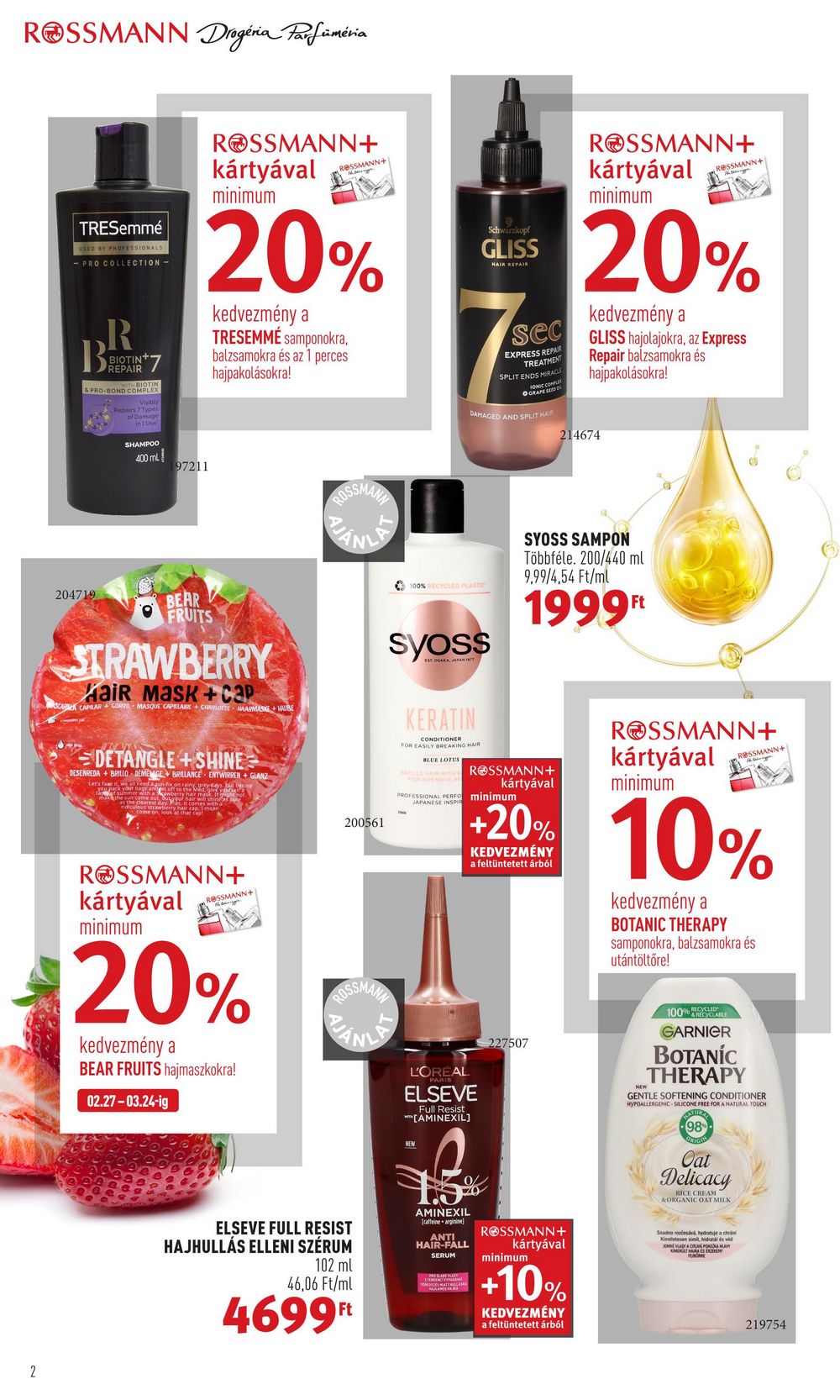 ROSSMANN Drogéria Parfüméria 2 TRESemmé USED BY PROFESSIONALS – PRO COLLECTION – BRO & PRO-BOND COMPLEX 204719 Repairs 7 Types of Damage in 1 Uve SHAMPOO 400 ml O ROSSMANN+ kártyával minimum 97211 20% kedvezmény a TRESEMME samponokra, balzsamokra és az 1 perces hajpakolásokra! BEAR FRUITS STRAWBERRY Hair Mask + Cap SCA CAPILAR GORRO MASQUE CAPILLAIRE + CHARLOTTE HAARMASKE DETANGLE+SHINE DESENREDA+BRILLO DEMENGE BRILLANCE ENTWIRREN + GLANZ ter’s fame it, well need a aun-fix on rainy grey days. E to the Med, give yourself Cast summer with a has the sun come out butwee hair within as the clearest days, it comes with come on, look at that co ROSSMANN+ kártyával minimum ROSSMANN+ ROSSMANN+ kedvezmény a BEAR FRUITS hajmaszkokra! 02.27-03.24-ig 200561 ELSEVE FULL RESIST HAJHULLÁS ELLENI SZÉRUM 102 ml 46,06 Ft/ml 4699Ft 100% RECYCLED PLASTIC syoss EST OSAKA, JAPAN KERATIN CONDITIONER FOR EASILY BREAKING HAIR BLUE LOTUS FOR INTENSIER DAMAGED AND SPLIT HAIR NEW Schwarzkopf GLISS HAIR REPAIR L’OREAL ELSEVE Full Resist [AMINEXIL] PROFESSIONAL PERFO minimum JAPANESE INSPIR 0/ AMINEXIL [caffeine arginine) ANTI HAIR-FALL SERUM 20% kedvezmény a sec GLISS hajolajokra, az Express EXPRESS REPAIR TREATMENT Repair balzsamokra és hajpakolásokra! SPLIT ENDS MIRACLE ROSSMANN+ kártyával minimum 214674 SYOSS SAMPON Többféle. 200/440 ml 9,99/4,54 Ft/ml 1999Ft ROSSMANN + kártyával -20% 10% KEDVEZMÉNY a feltüntetett árból 227507 ROSSMANN+ kártyával ROSSMANN+ minimum +10% KEDVEZMÉNY a feltüntetett árból H ROSSMANN+ kártyával minimum REP+ kedvezmény a BOTANIC THERAPY samponokra, balzsamokra és utántöltőre! 100% RECYCLABLE GARNIER BOTANIC THERAPY GENTLE SOFTENING CONDITIONER HYPOALLERGENIC-SILICONE FREE FOR A NATURAL TOUCH 98 Oat Delicacy &ORGANIC OAT MILK Snadno rozčesává, hydratuje a chráni Kindetesen simit, d EMNE VLASY AC KOMERAT AURA SY FUBORE 219754