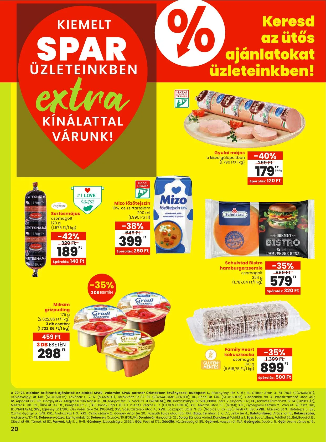 A 20-21. oldalon található ajánlatok az alábbi SPAR, valamint SPAR partner üzletekben érvényesek: