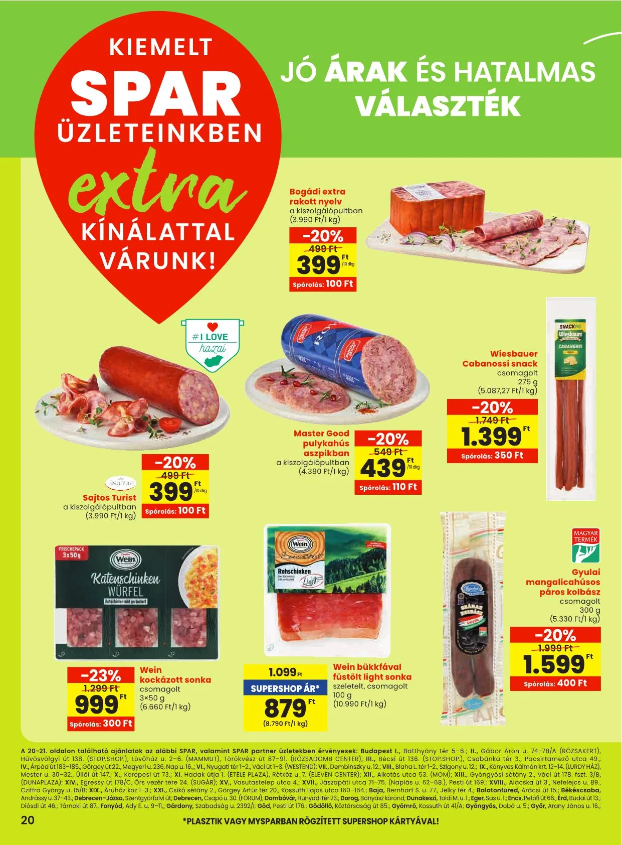 A 20-21. oldalon található ajánlatok az alábbi SPAR, valamint SPAR partner üzletekben érvényesek: