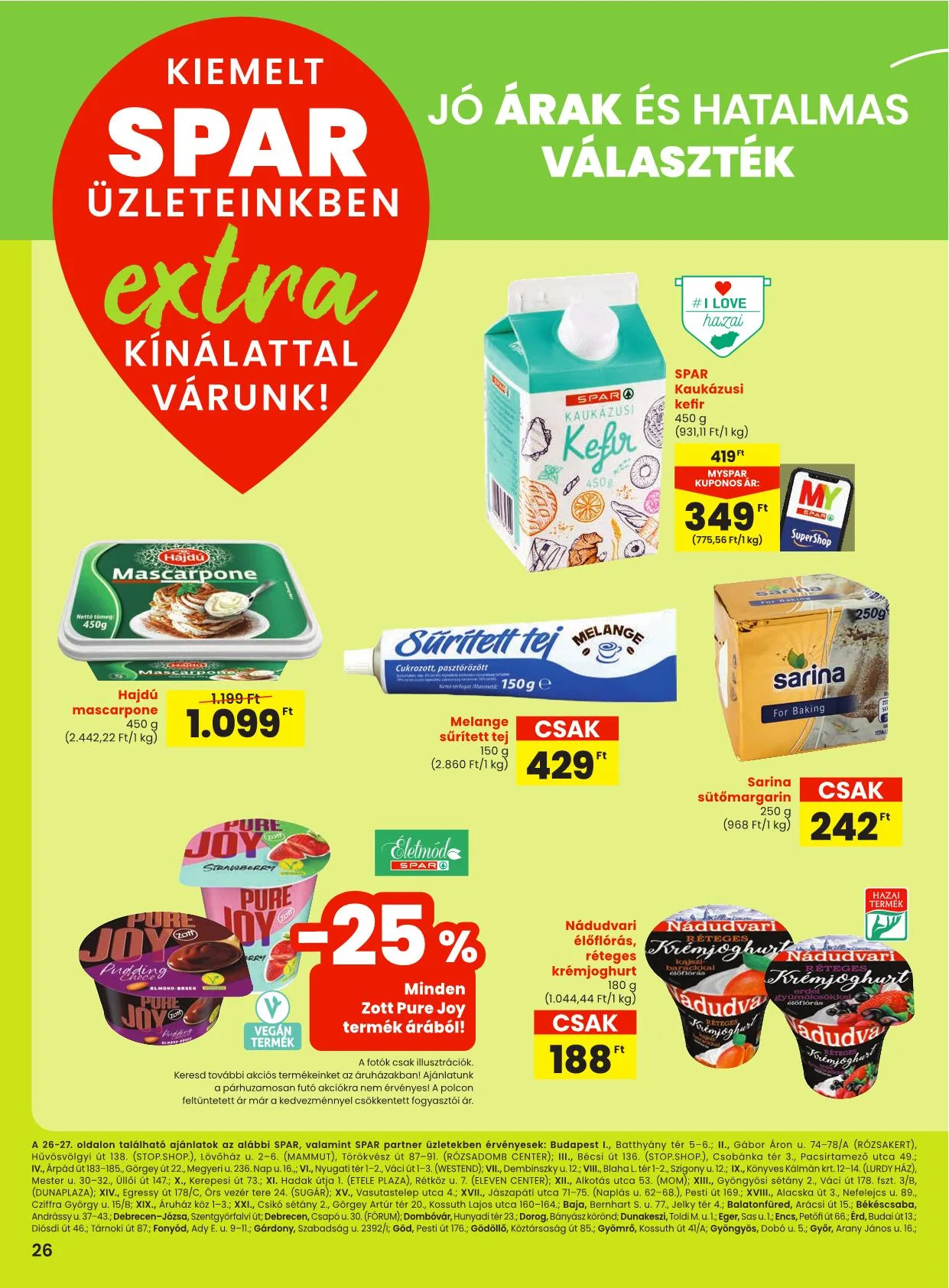 A 26-27. oldalon található ajánlatok az alábbi SPAR, valamint SPAR partner üzletekben érvényesek:
