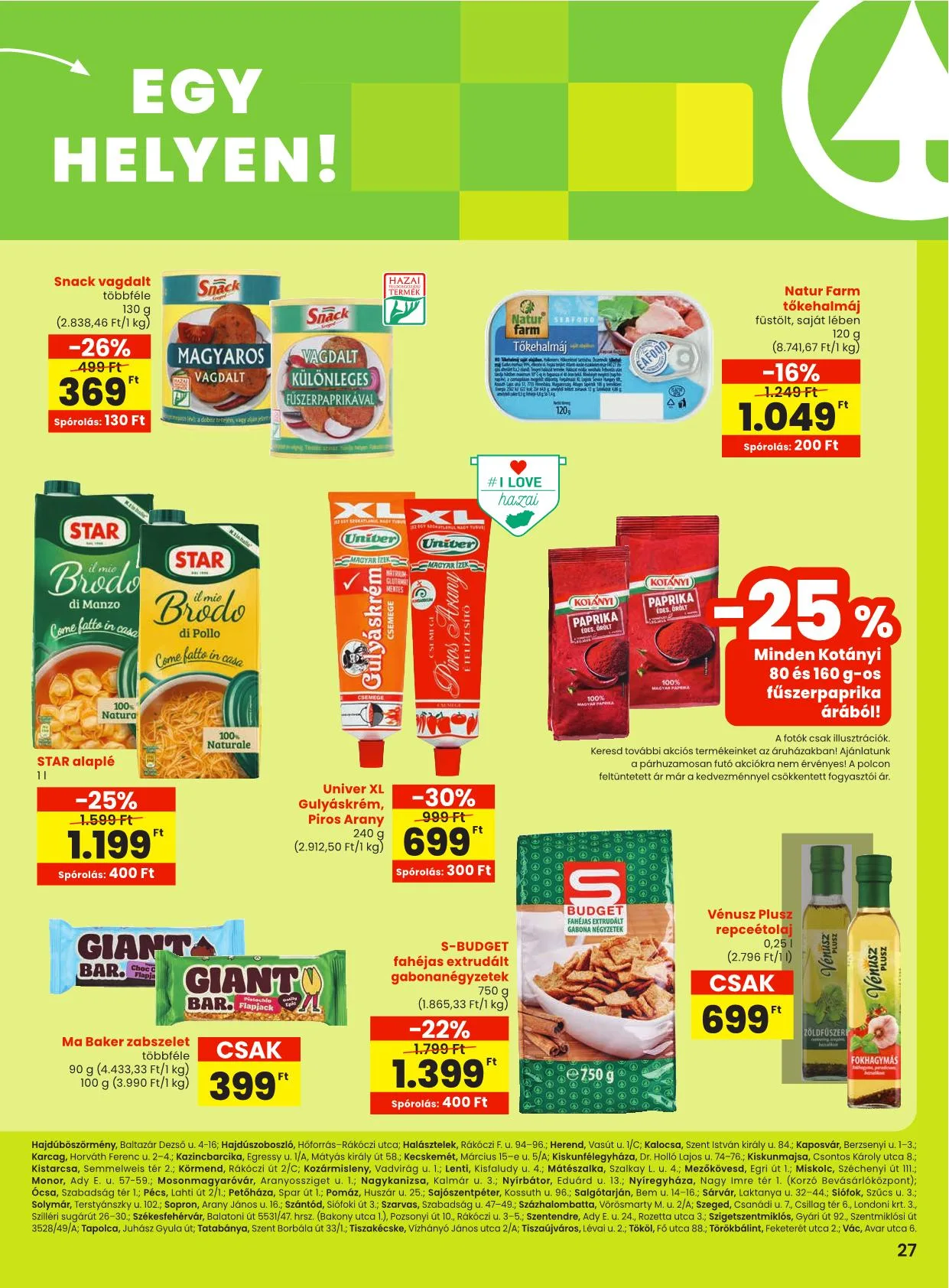 A 24-25. oldalon található ajánlatok az alábbi SPAR, valamint SPAR partner üzletekben érvényesek: