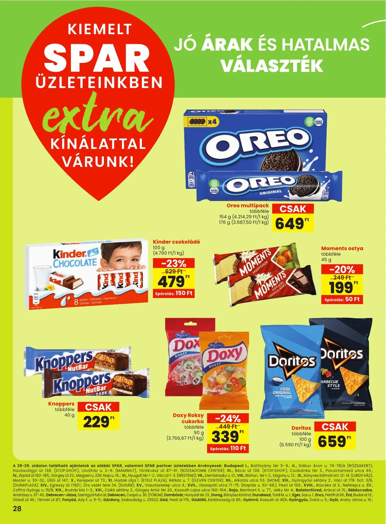 A 28-29. oldalon található ajánlatok az alábbi SPAR, valamint SPAR partner üzletekben érvényesek: