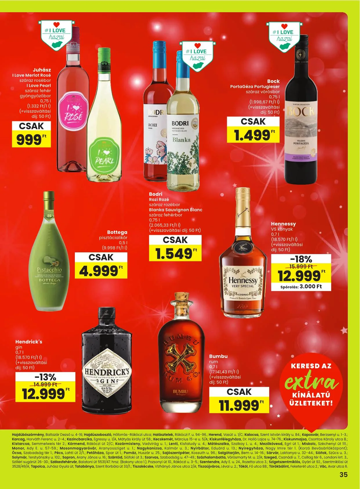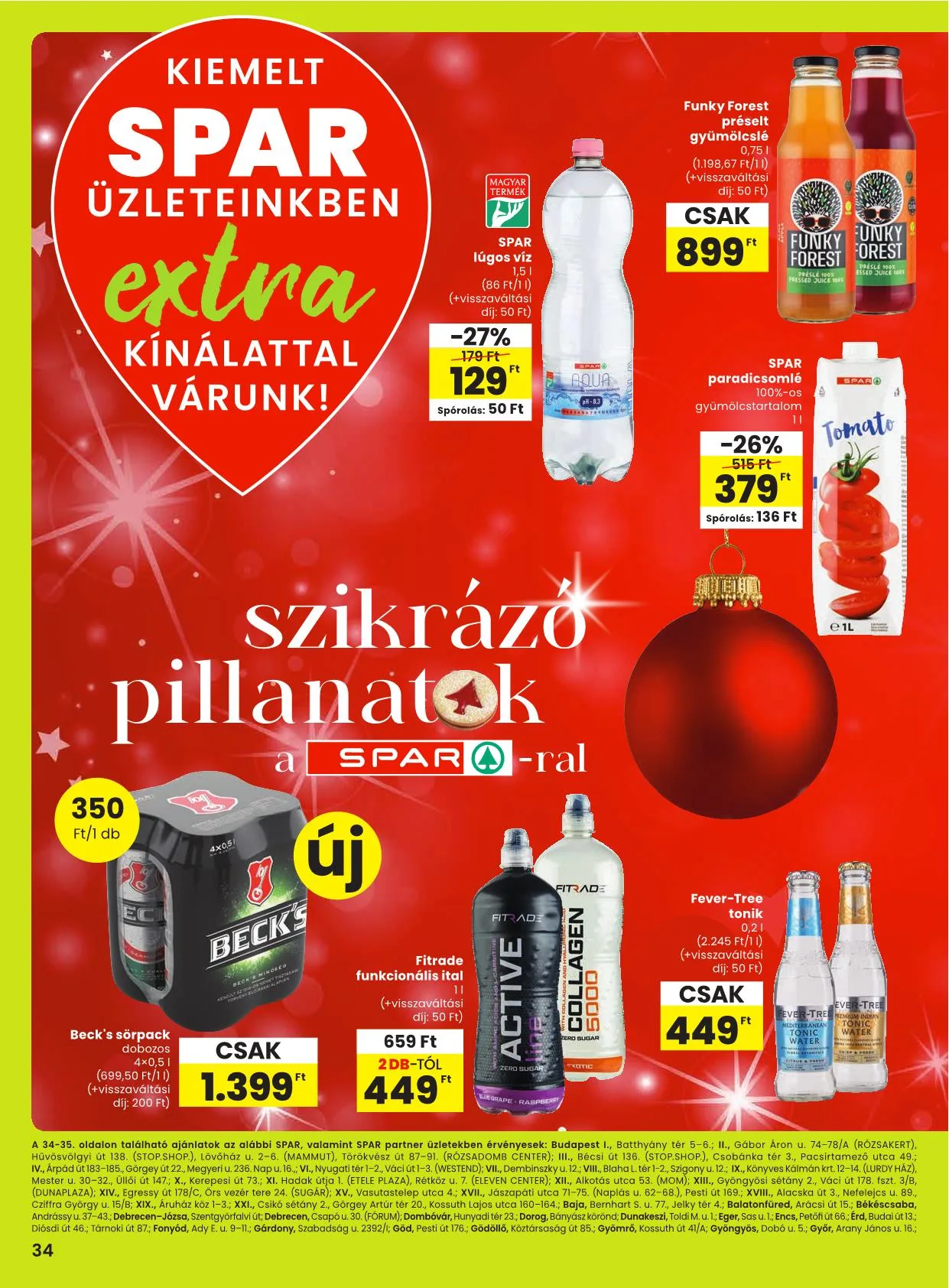 A 34-35. oldalon található ajánlatok az alábbi SPAR, valamint SPAR partner üzletekben érvényesek: