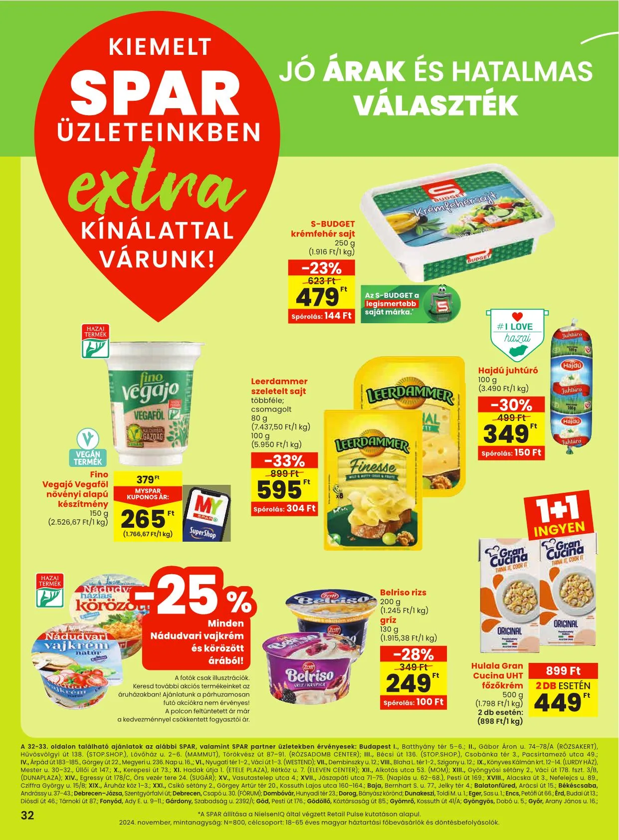 A 32-33. oldalon található ajánlatok az alábbi SPAR, valamint SPAR partner üzletekben érvényesek: Budapest I., Batthyány tér 5-6.; II., Gábor Áron u. 74-78/A (Rózsakert), Hűvösvölgyi út 138. (STOP.SHOP.), Lövőház u. 2-6. (Mammut)…