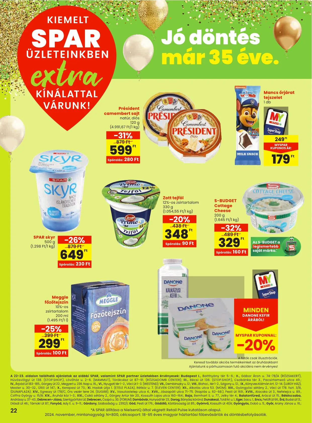 A 22-23. oldalon található ajánlatok az alábbi SPAR, valamint SPAR partner üzletekben érvényesek: