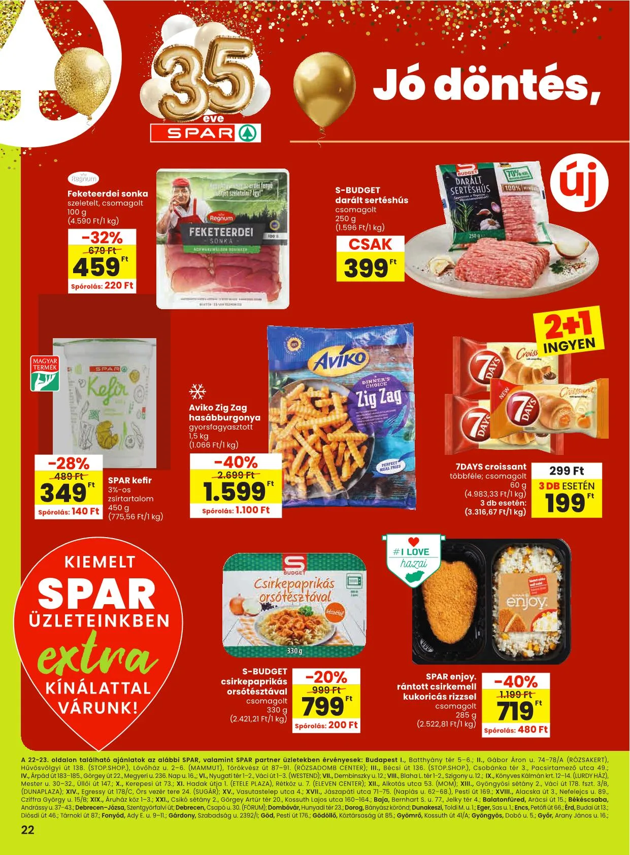 A 22-23. oldalon található ajánlatok az alábbi SPAR, valamint SPAR partner üzletekben érvényesek: