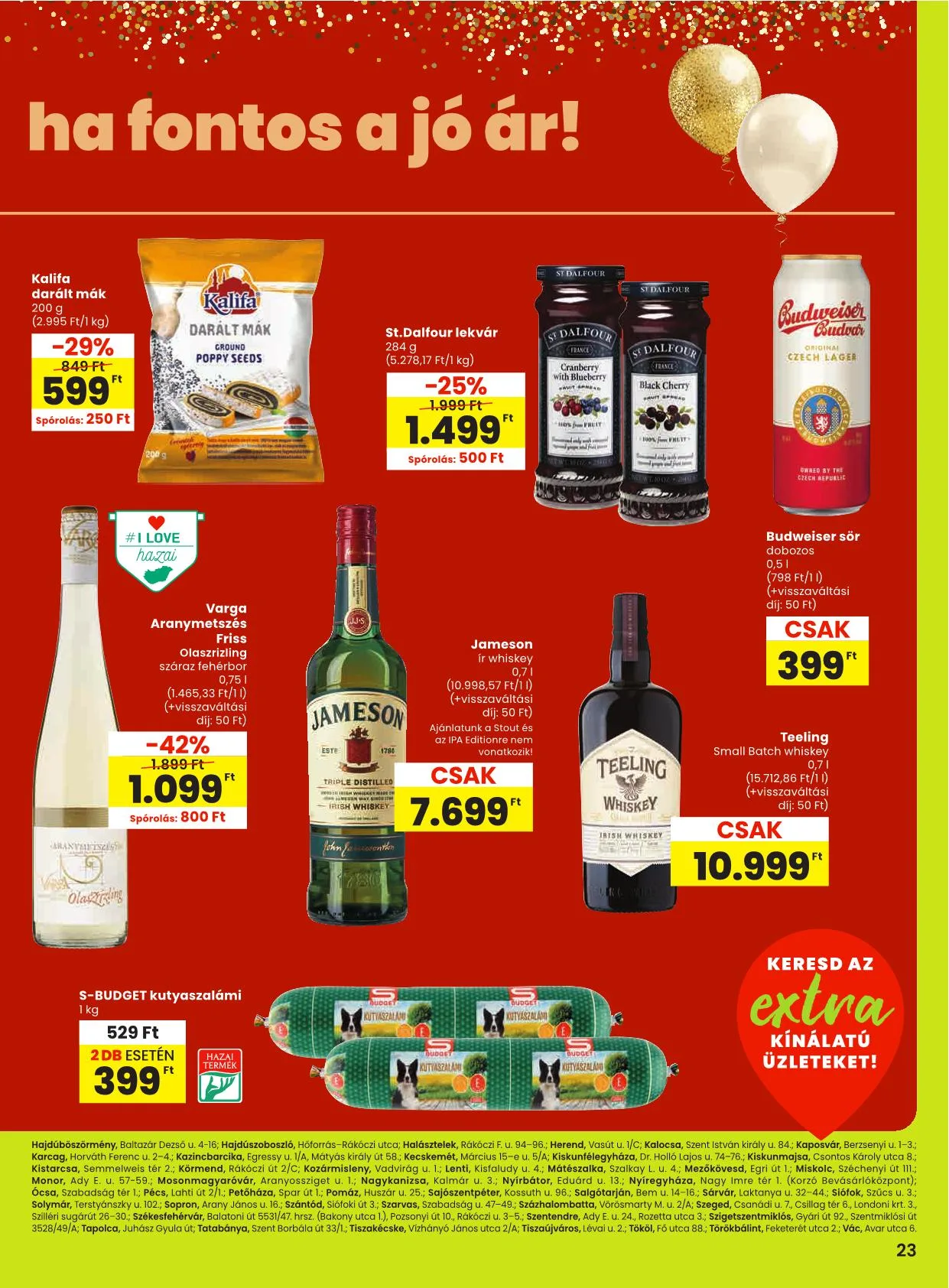 KERESD AZ EXTRA KÍNÁLATÚ ÜZLETEKET!