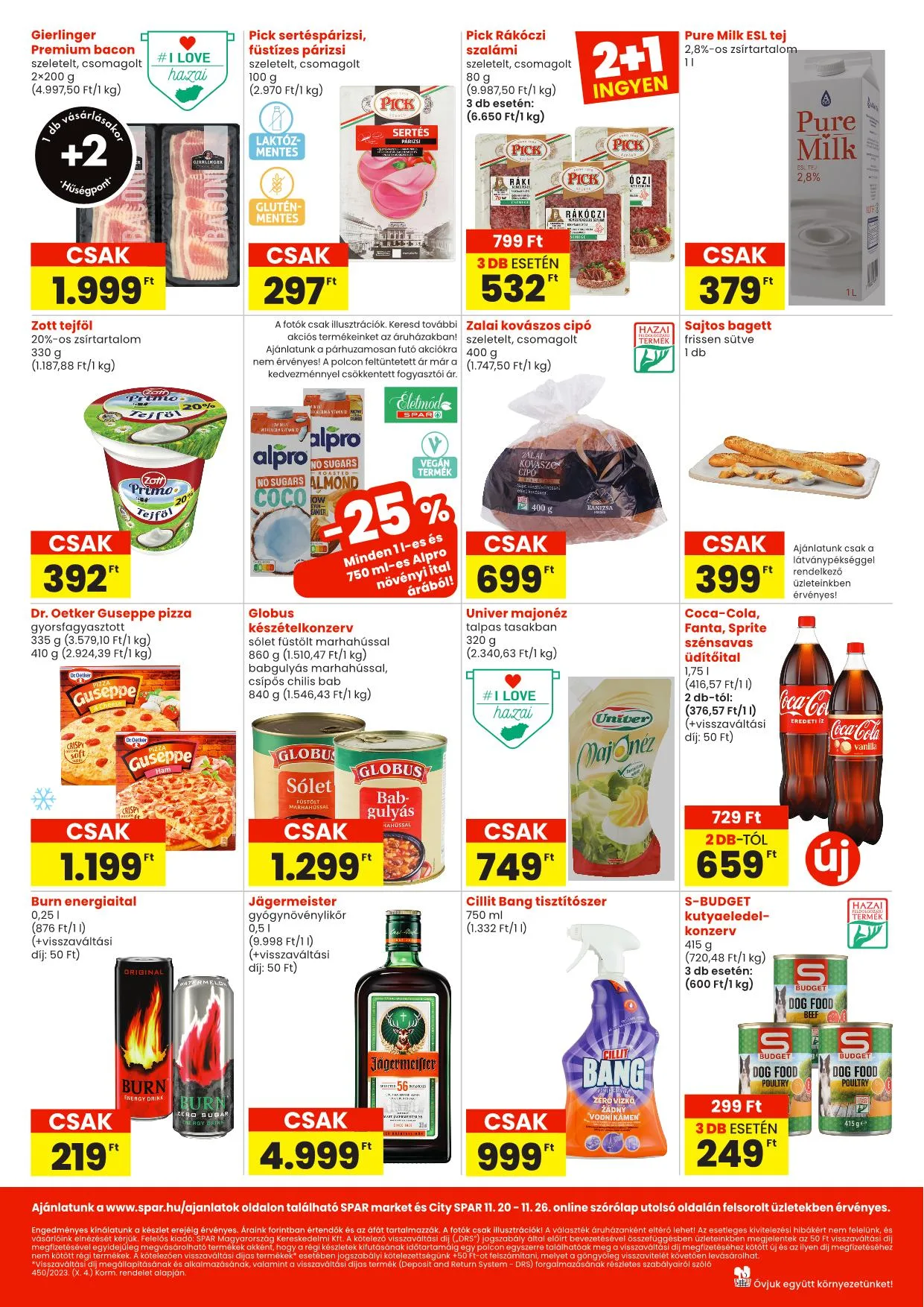 Ajánlatunk a spar.hu/ajanlatok oldalon található SPAR market és City SPAR 11.20-11.26. online szórólap utolsó oldalán felsorolt üzletekben érvényes.
