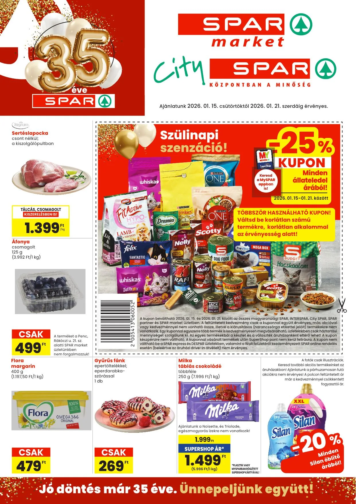 A kupon beváltható 2026. január 15. és 2026. január 21. között az összes magyarországi SPAR, INTERSPAR, City SPAR, SPAR partner és SPAR market üzletben.