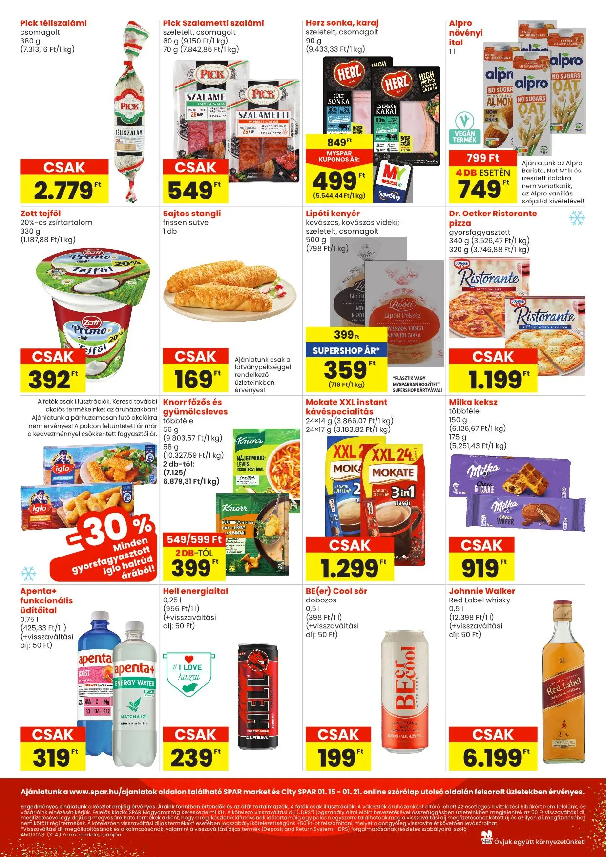Ajánlatunk a www.spar.hu/ajanlatok oldalon található SPAR market és City SPAR üzletekre érvényes 01.15-01.21 között.