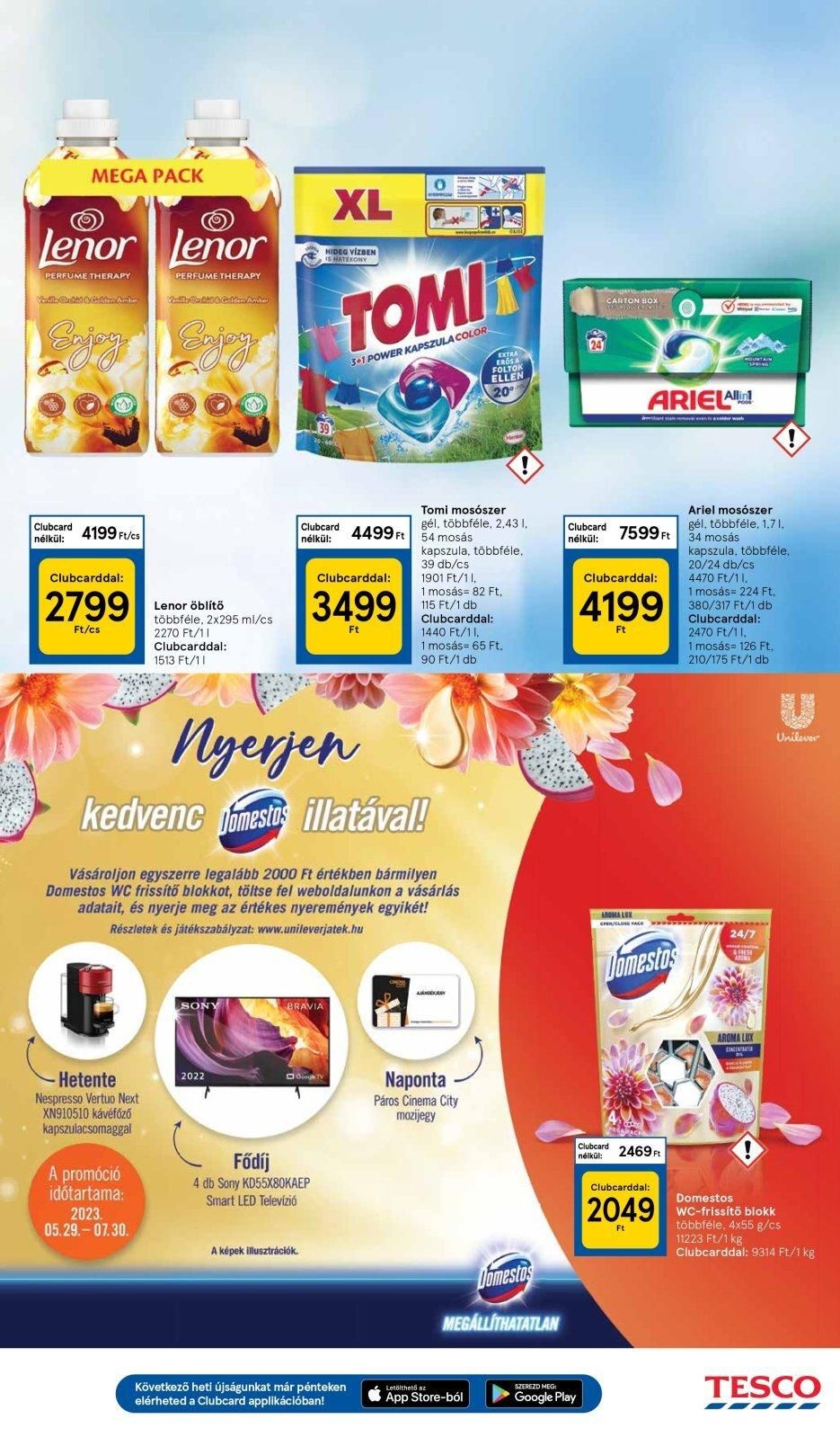 MEGA PACK (O lenor lenor PERFUME THERAPY Vanilla Orchid & Galen Amber Clubcard nélkül: 4199 Ft/cs Clubcarddal: 2799 Ft/cs PERFUME THERAPY Zillor AMSA C-Men Ande A promóció időtartama: 2023. 05.29.-07.30. Enjoy Lenor öblítő többféle, 2×295 ml/cs 2270 Ft/11 Clubcarddal: 1513 Ft/11 SONY 2022 XL HIDEG VÍZBEN IS HATEKONY Clubcard nélkül: BRAVIA A képek illusztrációk. Nyerjen kedvenc mestos illatával! Fődíj 4 db Sony KD55X80KAEP Smart LED Televízió TOMIT 3+1 POWER KAPSZULA COLOR Clubcarddal: 3499 Ft Vásároljon egyszerre legalább 2000 Ft értékben bármilyen Domestos WC frissítő blokkot, töltse fel weboldalunkon a vásárlás adatait, és nyerje meg az értékes nyeremények egyikét! Részletek és játékszabályzat: www.unileverjatek.hu E – Hetente Nespresso Vertuo Next XN910510 kávéfőző kapszulacsomaggal 0 Tomi mosószer gél, többféle, 2,431, 4499 Ft 54 mosás kapszula, többféle. 39 db/cs 1901 Ft/11, Következő heti újságunkat már pénteken elérheted a Clubcard applikációban! 1 mosás 82 Ft, 115 Ft/1 db Clubcarddal: 1440 Ft/11, 1 mosás= 65 Ft. 90 Ft/1 db A EXTRA EROS FOLTOK ELLEN 20° Naponta Páros Cinema City mozijegy Domestos MEGÁLLÍTHATATLAN Letölthető az App Store-ból CARTON BOX Clubcard nélkül: SZEREZD MEG Google Play 7599 Ft ARIELA Clubcarddal: 4199 Ft ARMALUX Domestos Clubcard 2469 Ft nélkül: M Clubcarddal: 2049 Ft venced w Ariel mosószer gél, többféle, 1,7 1, 34 mosás kapszula, többféle. 20/24 db/cs 4470 Ft/11, 1 mosás= 224 Ft. 380/317 Ft/1 db Clubcarddal: 2470 Ft/11, 1 mosás 126 Ft. 210/175 Ft/1 db 24/7 AROMA LUX CONCEN Domestos WC-frissítő blokk Unilever többféle. 4×55 g/cs 11223 Ft/1 kg Clubcarddal: 9314 Ft/1 kg TESCO
