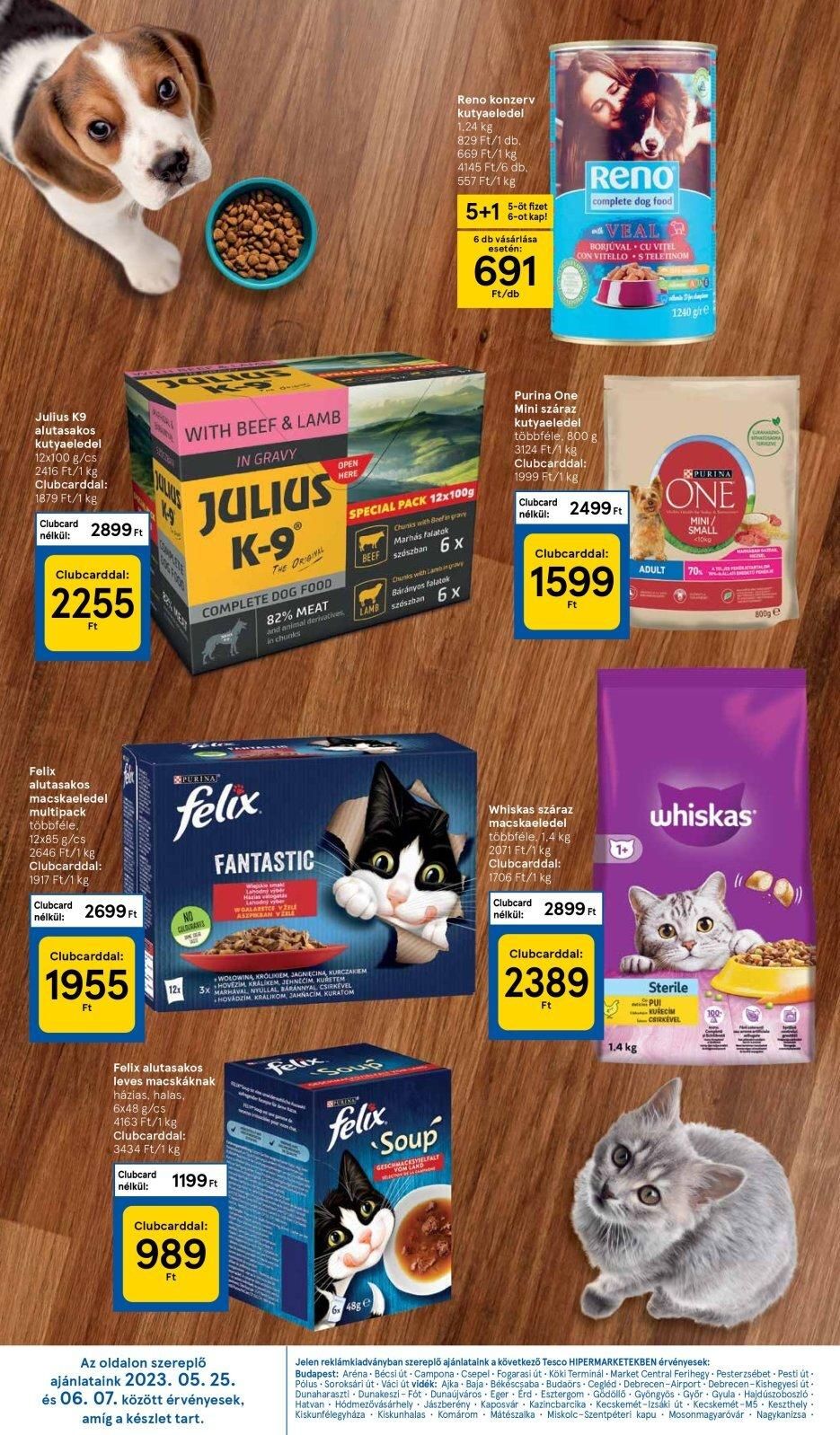 Julius K9 alutasakos kutyaeledel 12×100 g/cs 2416 Ft/1 kg Clubcarddal: 1879 Ft/1 kg Clubcard nélkül: Clubcarddal: 2255 Ft Felix alu 2899 Ft kos macskaeledel multipack többféle. 12×85 g/cs 2646 Ft/1 kg Clubcarddal: 1917 Ft/1 kg Clubcard nélkül: 2699 Ft Clubcarddal: 1955 Ft WASSE MAAY Clubcard nélkül: WITH BEEF & LAMB IN GRAVY JULIUS K-9° PURINA felix COLOURAIS 12x házias, halas, 6×48 g/cs 4163 Ft/1 kg Clubcarddal: 3434 Ft/1 kg COMPLETE DOG FOOD 82% MEAT and animal derivatives in chunks Felix alutasakos leves macskáknak FANTASTIC 3x HO Clubcarddal: 989 Ft 1199 Ft THE ORIGINAL WOALARETCE V VASPIKBAN VELE Az oldalon szereplő ajánlataink 2023. 05. 25. WOLOWINA, KROLIKIEM, JAGNIECINA, KURCZAKEM HOVEZIM KRALIKEM, JEHNECIM, KURETEM ARHAVAL NYULLAL BARANNYAL CSIRKEVEL HOVÁDZIM KRALIKOM, JAHNACIM KURATOM OPEN HERE & SWE és 06. 07. között érvényesek, amíg a készlet tart. LAMB SPECIAL PACK 12x100g Chunks with Beef in grave Marhás falatok BEEF szószban 6x CELINE felix Reno konzerv kutyaeledel 1,24 kg 829 Ft/1 db. 669 Ft/1 kg 4145 Ft/6 db. 557 Ft/1 kg Soup GESCHMACKSYSELFALT 48ge Ons with any Bárányos falatok szószban 6x 5-öt fizet 5+1 6-ot kap! 6 db vásárlása esetén: 691 Ft/db Purina One Mini száraz kutyaeledel többféle, 800 3124 Ft/1 kg Clubcarddal: 1999 Ft/1 kg VEAL BORJUVAL CU VITEL CON VITELLO STELETINOM Clubcard 2499 Ft nélkül: Whiskas száraz macskaeledel többféle, 1.4 kg 2071 Ft/1 kg Clubcarddal: 1706 Ft/1 kg HOOF Reno complete dog food Clubcarddal: 1599 Ft Clubcard nélkül: 2899 Ft Clubcarddal: 2389 Ft 1+ 1.4 kg ADULT NONO 1240 gre PURINA ONE MINI SMALL 70 Sterile PUI KURECIM CSIRKEVEL STAGRA 800g e whiskas Jelen reklámkiadványban szereplő ajánlataink a következő Tesco HIPERMARKETEKBEN érvényesek: Budapest: Aréna Bécsi út. Campona. Csepel. Fogarasi út Köki Terminál Market Central Ferihegy Pesterzsébet – Pesti út. Pólus Soroksári út Váci út vidék: Ajka Baja Békéscsaba Budaörs Cegléd Debrecen-Airport Debrecen-Kishegyesi út. Dunaharaszti Dunakeszi – Fót Dunaújváros Eger Érd Esztergom Gödöllő Gyöngyös Győr Gyula Hajdúszoboszló. Hatvan Hódmezővásárhely Jászberény Kaposvár Kazincbarcika Kecskemét-Izsáki út Kecskemét-M5 Keszthely. Kiskunfélegyháza Kiskunhalas Komárom Mátészalka Miskolc-Szentpéteri kapu Mosonmagyaróvár Nagykanizsa