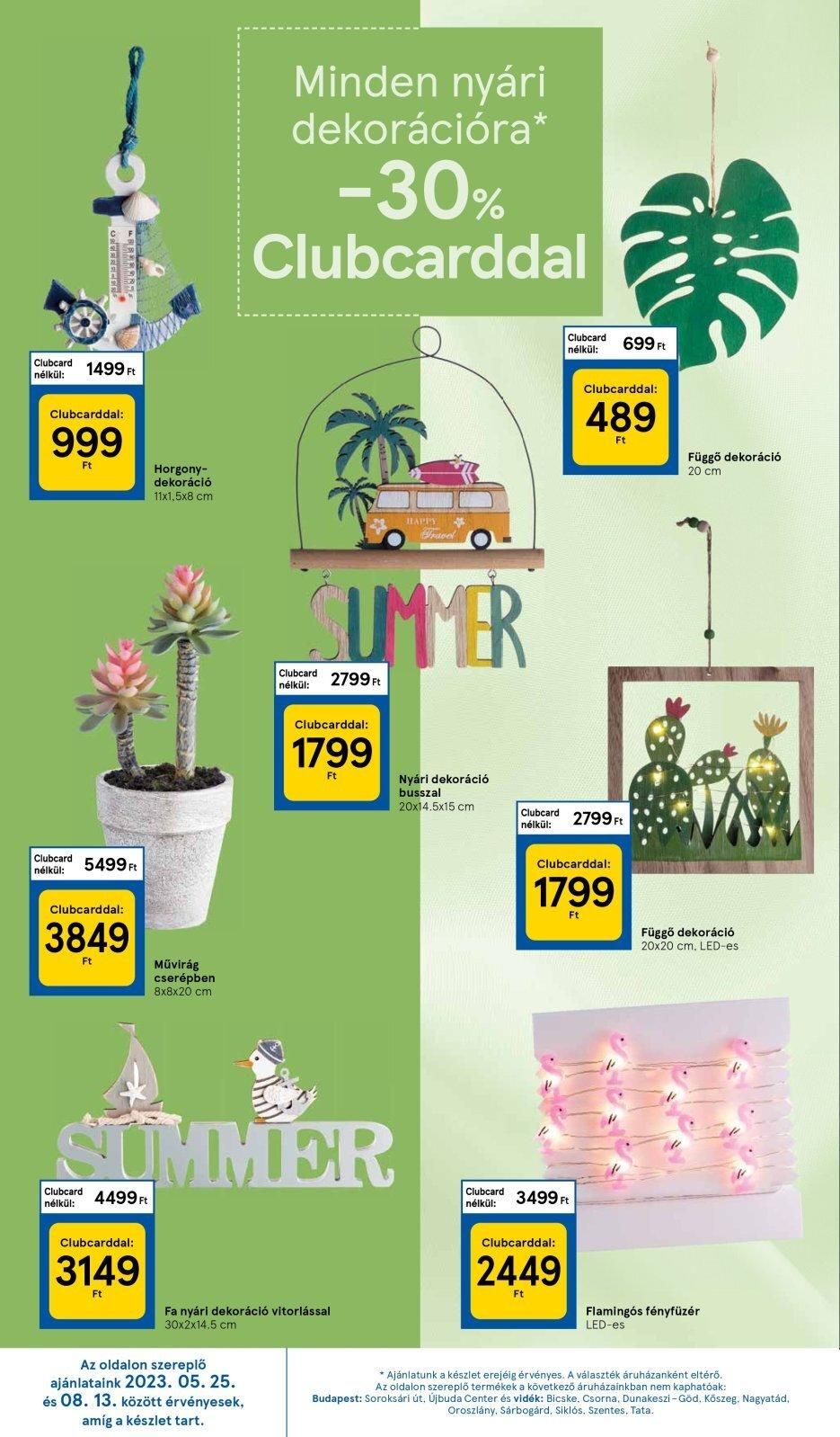 REFECER BELLISHE Clubcard 1499 Ft nélkül: Clubcarddal: 999 Ft Clubcard 5499 Ft nélkül: Clubcarddal: 3849 Ft Clubcard nélkül: 4499 Ft Horgony- dekoráció 11×1,5×8 cm Clubcarddal: 3149 Ft Művirág cserépben 8x8x20 cm Minden nyári dekorációra* -30% Clubcarddal Clubcard nélkül: SUMMER Az oldalon szereplő ajánlataink 2023. 05. 25. és 08. 13. között érvényesek, amíg a készlet tart. LUMMER 2799 Ft Clubcarddal: 1799 Ft Fa nyári dekoráció vitorlással 30x2x14.5 cm HAP Nyári dekoráció busszal 20×14.5×15 cm Clubcard nélkül: Clubcard nélkül: Clubcard 2799 Ft nélkül: Clubcarddal: 1799 Ft 3499 Ft Clubcarddal: 2449 Ft 699 Ft Clubcarddal: 489 Ft Függő dekoráció 20 cm Függő dekoráció 20×20 cm, LED-es Flamingós fényfüzér LED-es * Ajánlatunk a készlet erejéig érvényes. A választék áruházanként eltérő. Az oldalon szereplő termékek a következő áruházainkban nem kaphatóak: Budapest: Soroksári út, Újbuda Center és vidék: Bicske. Csorna, Dunakeszi-Göd. Köszeg. Nagyatád, Oroszlány, Sárbogárd, Siklós, Szentes, Tata.