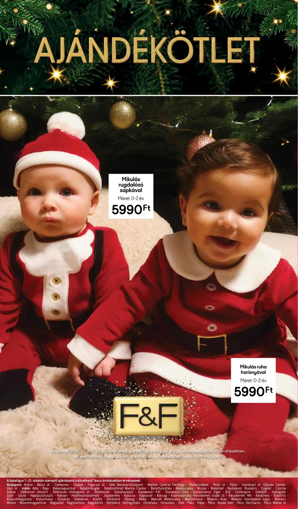 Az ajánlat 2025. október 30-tól a készlet erejéig érhető el a ruházati osztállyal rendelkező Tesco áruházakban. Az elérhetőség áruházanként eltérő és változó. Részletek: tesco.hu/ff-ruhazat/
