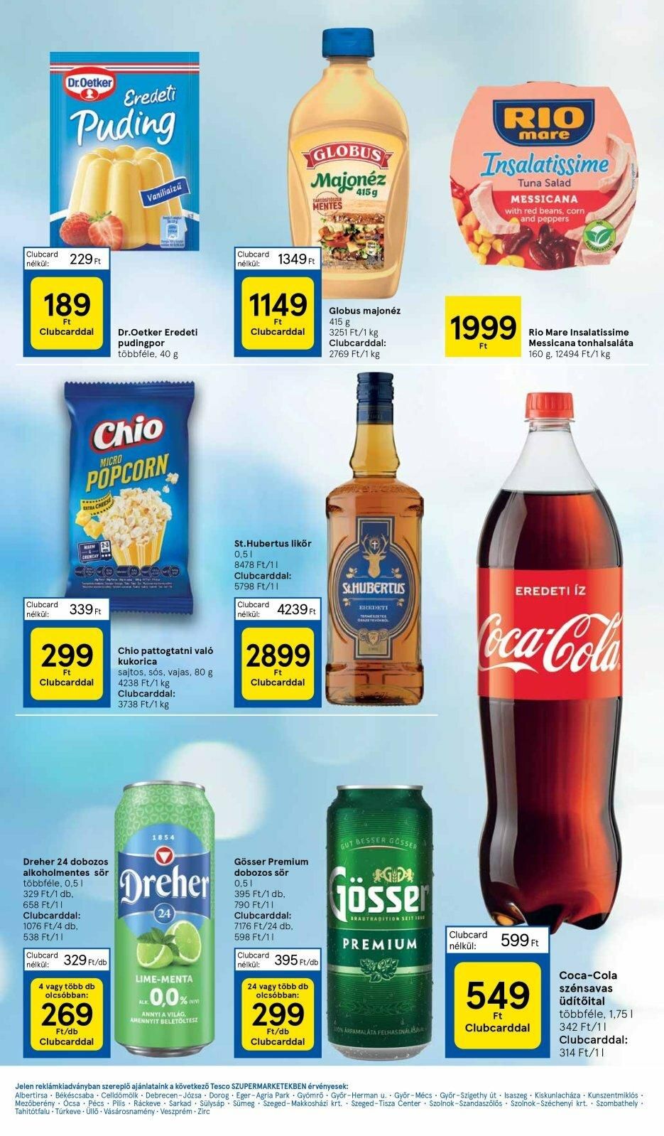 Clubcard nélkül: Dr.Oetker Clubcard nélkül: Eredeti Puding 229 Ft 189 Ft Clubcarddal KARM 23 Chio MICRO POPCORN 339 Ft 299 Ft Clubcarddal Dreher 24 dobozos alkoholmentes sör többféle, 0,51 329 Ft/1 db. 658 Ft/11 Clubcarddal: 1076 Ft/4 db, 538 Ft/11 Clubcard 329 Ft/db nélkül: 4 vagy több db olcsóbban: Vaniliaizu COMOROCO 269 Ft/db Clubcarddal Dr.Oetker Eredeti pudingpor többféle, 40 g Chio pattogtatni való kukorica sajtos, sós, vajas, 80 g 4238 Ft/1 kg Clubcarddal: 3738 Ft/1 kg 1854 Dreher LIME-MENTA ALK. 0,0% N ANNYI A VILÁG AMENNYIT BELETOLTESZ Clubcard nélkül: 1149 Ft Clubcarddal 1349 Ft GLOBUS Majonéz 415g St.Hubertus likör 0,51 8478 Ft/11 Clubcarddal: 5798 Ft/11 2899 Ft Clubcarddal TES Clubcard 4239 Ft nélkül: Gösser Premium dobozos sör 0,5 1 395 Ft/1 db. 790 Ft/11 Clubcarddal: 7176 Ft/24 db. 598 Ft/11 24 vagy több db olcsóbban: 299 Ft/db Clubcarddal Clubcard 395 Ft/db nélkül: Globus majonéz 415 g 3251 Ft/1 kg Clubcarddal: 2769 Ft/1 kg St.HUBERTUS A EREDETI GUT BESSER GOSSER AGD Josse BRAUTRADITION SEIT 100 PREMIUM ARPAMALATA FELHASZNÁLA RIO mare Insalatissime Tuna Salad MESSICANA with red beans, corn and peppers 1999 Ft Clubcard nélkül: Rio Mare Insalatissime Messicana tonhalsaláta 160 g, 12494 Ft/1 kg EREDETI IZ Coca-Cola 599 Ft 549 Ft Clubcarddal Coca-Cola szénsavas üdítőital többféle, 1,751 342 Ft/11 Clubcarddal: 314 Ft/11 Jelen reklámkiadványban szereplő ajánlataink a következő Tesco SZUPERMARKETEKBEN érvényesek: Albertirsa Békéscsaba Celldömölk Debrecen-Józsa Dorog Eger-Agria Park Gyömrő Győr-Herman u. Győr-Mécs Györ-Szigethy út Isaszeg Kiskunlacháza Kunszentmiklós. Mezőberény Ócsa Pécs Pilis Ráckeve Sarkad Sülysáp Sümeg Szeged-Makkosházi krt. Szeged-Tisza Center Szolnok-Szandaszőlős Szolnok-Széchenyi krt. Szombathely. Tahitótfalu Túrkeve Üllő Vásárosnamény Veszprém Zirc