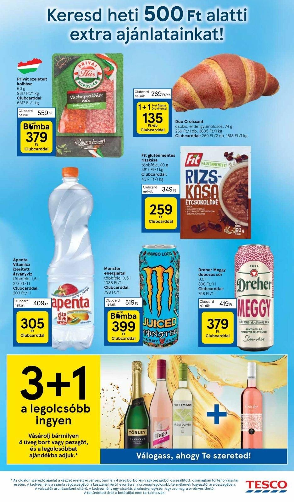 Privát szeletelt kolbász 60 g 9317 Ft/1 kg Clubcarddal: 6317 Ft/1 kg Clubcard 559 Ft nélkül: Keresd heti 500 Ft alatti extra ajánlatainkat! -Y Bomba 379 Ft Clubcarddal Apenta Vitamixx ízesített ásványvíz többféle, 1,51 273 Ft/11 Clubcarddal: 203 Ft/11 305 Ft Clubcarddal Clubcard 409 Ft nélkül: myllik PRIVAL His TAPOSVAR Vastagkolbász mix vita mix C.B. apenta alma mans Saye a hazatt 3+1 a legolcsóbb ingyen Vásárolj bármilyen 4 üveg bort vagy pezsgőt, és a legolcsóbbat ajándékba adjuk.* Monster energiaital többféle, 0,51 1038 Ft/11 Clubcarddal: 798 Ft/11 Clubcard 269 Ft/db nélkül: 1-et fizetsz 1+1 2-t vihetsz! Clubcard 519 Ft nélkül: 135 Ft/db Clubcarddal Fit gluténmentes rizskása többféle, 60 g 5817 Ft/1 kg Clubcarddal: 4317 Ft/1 kg Clubcard 349 Ft nélkül: 259 Ft Clubcarddal MANGO LOCO Bomba 399 Ft Clubcarddal NERGYJU TÖRLEY CHARMANT Me Duo Croissant csokis, erdei gyümölcsös, 74 g 269 Ft/1 db. 3635 Ft/1 kg Clubcarddal: 269 Ft/2 db. 1818 Ft/1 kg JUICED MONSTER Hugo Fit RIZS- KASA ÉTCSOKOLÁDÉ MULIN ELELROSFORRAS HOZZAADOTT TARTÓSÍTÓSZER- E SZEZEKMENTES FRITTMANN CLUTÉNMENTES IRSAI OLIVER Dreher Meggy obozos sör 0,51 838 Ft/11 Clubcarddal: 758 Ft/11 Clubcard nélkül: 419 Ft 379 Ft Clubcarddal + 60g 1854 Dreher MEGGY SELE ROMLÓ alk. 40% (VM) 30% ANNYI A VILÁG AMENNYIT BELETÖLTESZ Dreher Antal Csiplie Válogass, ahogy Te szereted! * Az oldalon szereplő ajánlat a készlet erejéig érvényes, bármely 4 üveg borból és/vagy pezsgőből összeállított, csomagban történő vásárlás esetén. A kedvezmény a számla végösszegéből a kasszánál kerül levonásra, a csomag legolcsóbb termékének fogyasztói ára összegében. TESCO A választék áruházanként eltérő. A kedvezmény egy vásárlás alkalmával egyszer, egy csomagra érvényesíthető. A feltüntetett árak a betétdíjat nem tartalmazzák!
