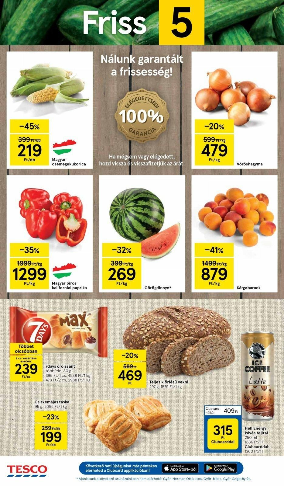 -45% 399 Ft/db 219 Ft/db -35% 1999 Ft/kg 1299 Ft/kg Többet olcsóbban 2 cs vásárlása esetén: 239 Ft/cs DAYS 777 Magyar csemegekukorica Magyar piros kaliforniai paprika 7days croissant többféle, 80 g TESCO Friss 5 Nálunk garantált a frissesség! Max with cocos sing 395 Ft/1 cs, 4938 Ft/1 kg 478 Ft/2 cs. 2988 Ft/1 kg. Csirkemájas táska 95 g. 2095 Ft/1 kg Commandon -23% 259 Ft/db 199 Ft/db ELEGEDETTSEE 100% GARANCIA Ha mégsem vagy elégedett, hozd vissza és visszafizetjük az árát. -32% 399 Ft/kg 269 Ft/kg -20% PARTISALARIAL 589 Ft 469 Ft Görögdinnye* Teljes kiőrlésű vekni 297 g. 1579 Ft/1 kg -20% 599 Ft/kg 479 Ft/kg Letölthető az App Store-ból -41% 1499 Ft/kg 879 Ft/kg 315 Ft Clubcarddal Vöröshagyma Clubcard 409 Ft nélkül: Sárgabarack SZEREZD MEG: Google Play TANCATE CO ICE COFFEE Latte Következő heti újságunkat már pénteken elérheted a Clubcard applikációban! * Ajánlatunk a kövekezö áruházainkban nem elérhető: Gyōr-Herman Ottó utca, Győr-Mécs, Györ-Szigethy út. 4 Hell Energy kávés tejital 250 ml 1636 Ft/11 Clubcarddal: 1260 Ft/11 TROLER