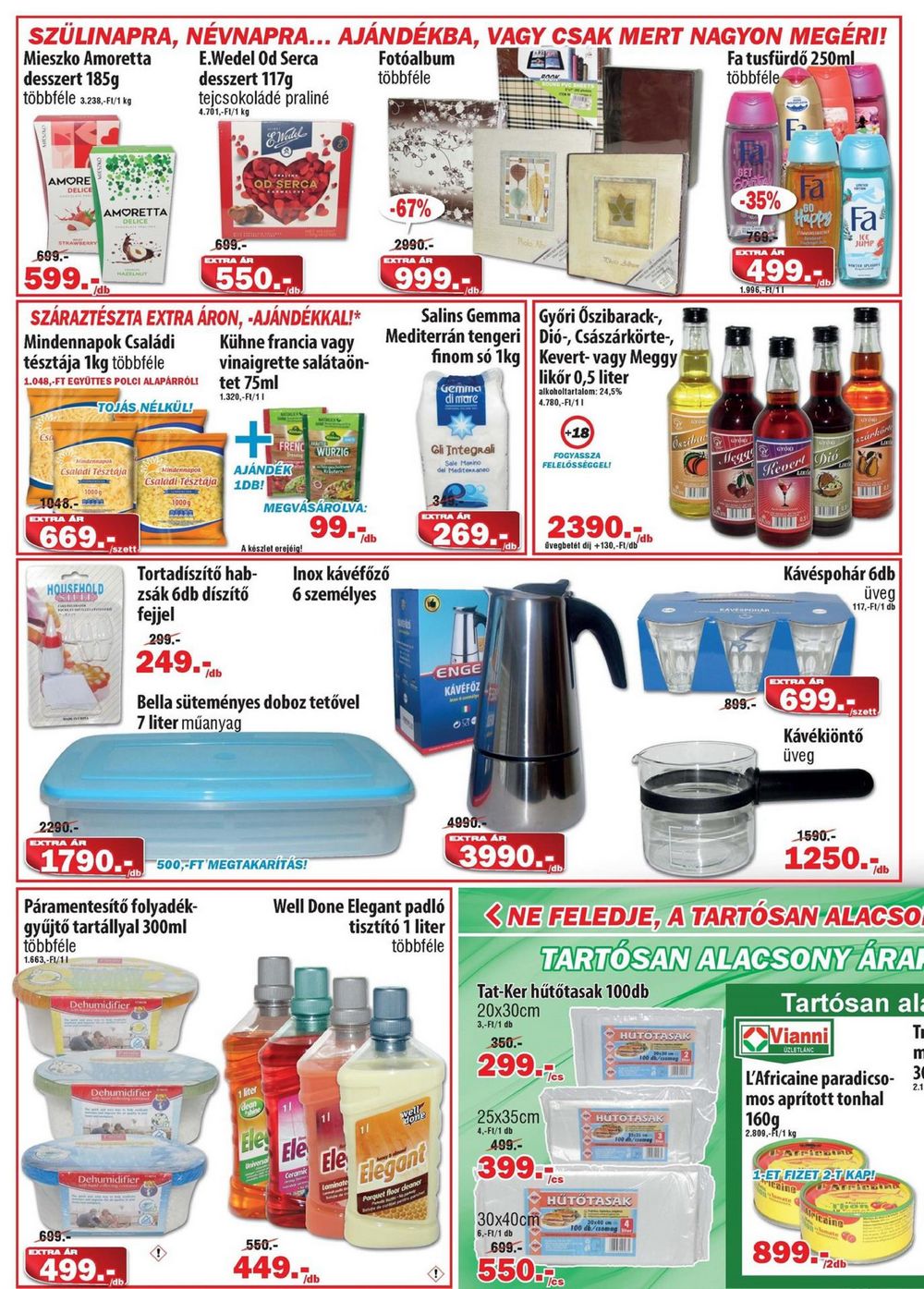SZÜLINAPRA, NÉVNAPRA… AJÁNDÉKBA, VAGY CSAK MERT NAGYON MEGÉRI! E.Wedel Od Serca desszert 117g tejcsokoládé praliné Fotóalbum többféle Fa tusfürdő 250ml többféle 4.701,-F1/1 kg Wedel Mieszko Amoretta desszert 185g többféle 3.238,-F1/1 kg AMORE DELICE THE NE STRAWBERRY 699.- 599.- Esa Mindennapok 1048.- EXTRA AR /db /db SZÁRAZTÉSZTA EXTRA ÁRON, -AJÁNDÉKKAL!* Mindennapok Családi tésztája 1kg többféle Kühne francia vagy vinaigrette salátaön- tet 75ml 1.048,-FT EGYÜTTES POLCI ALAPÁRRÓLI 1.320,-Ft/11 TOJÁS NÉLKÜL! Csaledi Tésztája AMORETTA DELICE 10000 wor 669.- HOUSEHOLD SILLE HAZELNUT 699.- EXTRA AR -/szett. Dehumidifier e Páramentesítő folyadék- gyűjtő tartállyal 300ml többféle 1.663,-FI/11 ho BOS Mindennapot Dehumidifier 499.- Dehumidifier ./db. 699.- EXTRA AR Csaladi Tesztaja 10009 ADVA 299.- 249.- /db 550.- wwwVIKA OD SERCA **** Tortadíszítő hab- zsák 6db díszítő fejjel 2290.- EXTRA AR 1790.500,-FT MEGTAKARÍTÁS! + AJÁNDEK 1DB! A készlet erejéig! FRENC WURZIG Bella süteményes doboz tetővel 7 liter műanyag 1 liter dean and MEGVÁSÁROLVA: 99. Ele Universal WART & Mr you a Ele Ceramic Inox kávéfőző 6 személyes 550,- 449.- /db -67% 2990.- EXTRA ÁR /db Laminato 999.- Salins Gemma Mediterrán tengeri finom só 1kg Well Done Elegant padló tisztító 1 liter többféle Ele Elegant Parquet floor cleaner pas well don? /db Gemma di mare EXTRA ÁR Gli Integrali Sale Menino del Mediteraneo 269.- ENGE KÁVÉFŐZ ! 604 Mok /db. 4990.- EXTRA ÁR BOOK BOUVE Győri Őszibarack-, Dió-, Császárkörte-, Kevert- vagy Meggy likőr 0,5 liter alkoholtartalom: 24,5% 4.780,-FI/11 3990.- 350.- 299. 25x35cm 4,-Ft/1 db +18 FOGYASSZA FELELŐSSÉGGEL! 2390.- üvegbetét dij +130,-Ft/db 499.- 399. /db The Slee /cs 10 30x40cm 1 6.-Ft/1 db 699.- 5507.0 HUTOTASAK = ./db 20×40 100 db/csomag HUTOTASAK 100 d HUTOTASAK 313 MM I SETL Santel -35% 769 EXTRA ÁR Oczibar 906 Megg 499.- 1.996,-F/11 NE FELEDJE, A TARTÓSAN ALACSO TARTÓSAN ALACSONY ÁRAI Tat-Ker hűtőtasak 100db 20x30cm 3,-Ft/1 db TILL Fa 60 Happy Fa „RAVE SPEAR /db Gro Kevert Dió P Kávéspohár 6db üveg 117,-Ft/1 db EXTRA AR 899.- 699,- Kávékiöntő üveg Vianni UZLETLÁNC KE JUMP 1590.- 1250.db P azúrkör Za Tartósan ala T Africaine 899. 10 szett L’Africaine paradicso- mos aprított tonhal 160g 2.809,-Ft/1 kg USA GrieNINE 1-ET FIZET 2-T KAP! itaing G caine lomate /2db Atriesing Team Gra m 30 2.1